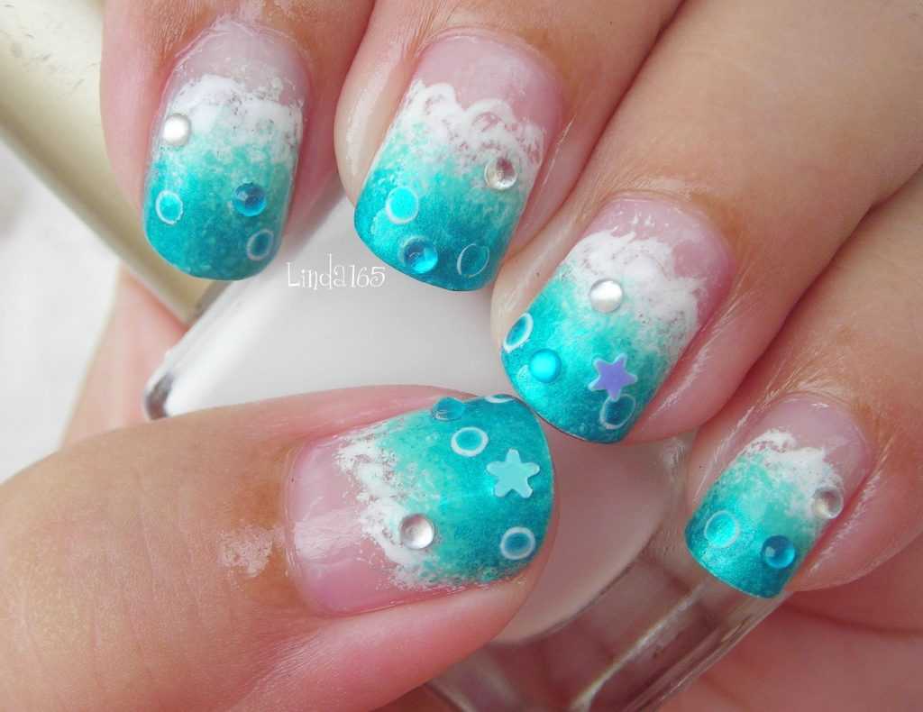 Изображение морской волны сможет не только поднять настроение в жаркий летний день, но и дополнить ваш летний образ. Конечно же, если вы обладаете талантом художника, то без труда сможете самостоятельно нарисовать водную стихию. Если же нет, то можете смело использовать технику стемпинга.