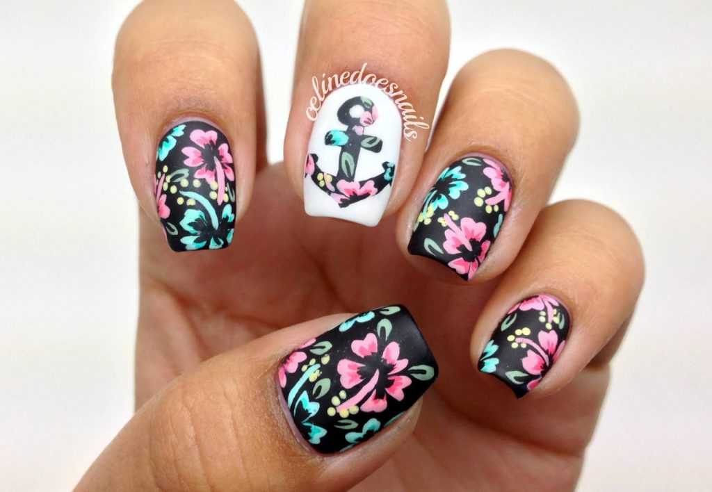 Маникюр на морскую тематику невозможно представить себе без соответствующих рисунков. Эффектно будут выглядеть якоря, пальмы, обитатели морских глубин, ракушки и т. д. Выбор зависит только от вашей фантазии.