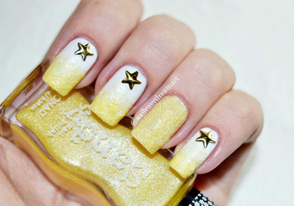 Создать пляжное настроение поможет россыпь золотистых камешков. Это могут быть пайетки, бульонки, камифубуки, глиттер и т. д. Реалистичности в картинку внесет морская звезда или ракушка.