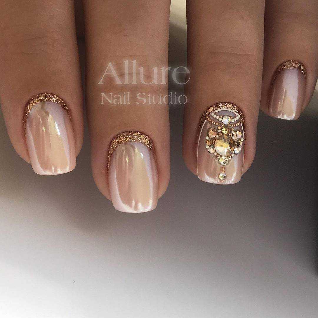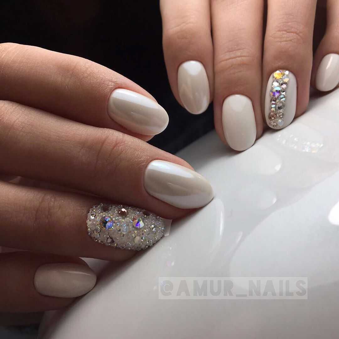 Еще один вариант создания праздничного, вечернего маникюра – стразы. Однако в этом сезоне они могут быть очень объемными. Ими украшают ногтевые пластины в зависимости от желаемого результата. Если предстоит вечеринка или праздник, ноготь можно полностью усыпать камушками, если нужно добиться более сдержанного, повседневного результата, достаточно одного камушка. Отличная основа для страз – пастельные оттенки – персиковый, розовый, молочный, песочный, бежевый.