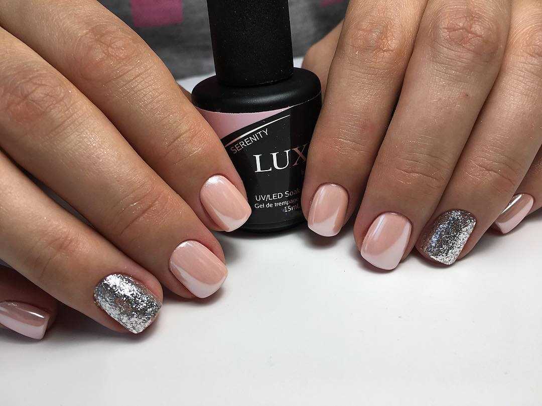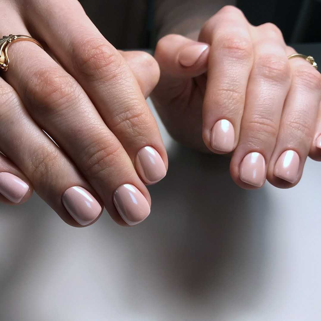 Жемчужная втирка отлично будет смотреться на разной длине ногтя и такой вариант будет особенно модным в 2023 году.