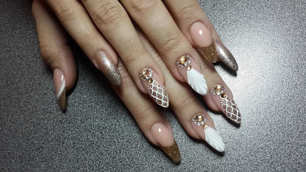 Многие девушки на праздник предпочитают делать маникюр со стазами или жемчугом. И это понятно. Такой дизайн ногтей выглядит весьма эффектно и презентабельно. Маникюр с жемчугом идеально подойдет к маленькому черному платью, а дизайн с небольшим количеством страз на ногтях будет уместно смотреться практически с любым коктейльным платьем. Правильно подобранный декор для маникюра помогает грамотно расставить акценты.