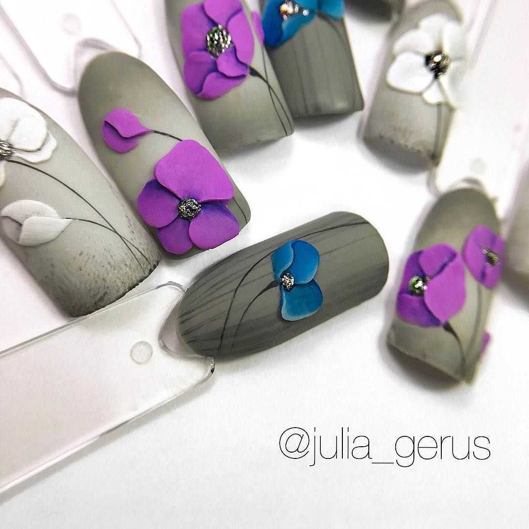 Сейчас в моде и классические цветы и абстрактные фантазийные, которые легко придумать самой, либо подсмотреть на фото у других мастеров.