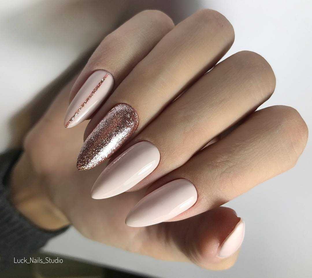 Искусственное затемнение одного выборочного ногтя по сравнению с другими — это еще один хороший способ сделать классический нюд более оригинальным. Подберите цвет лака темнее, чем цвет остальных ногтей. Выберите любой ноготок, где он лучше всего подойдет — большой либо безымянный. Его дополнительно можно украсить крупным декором или блестками.