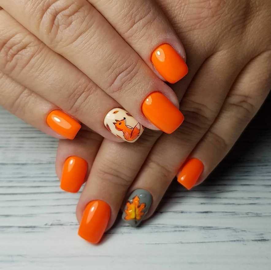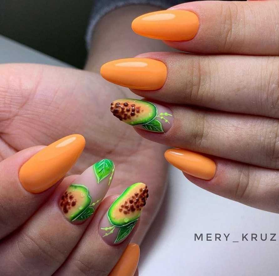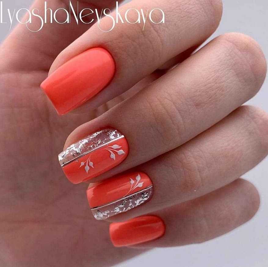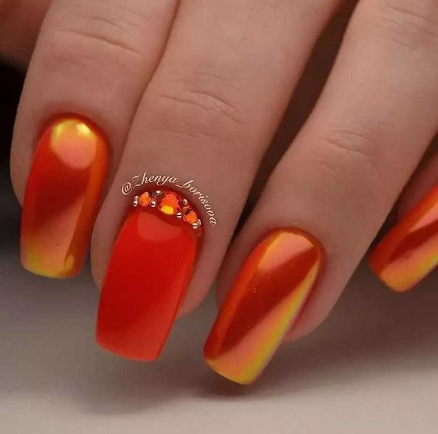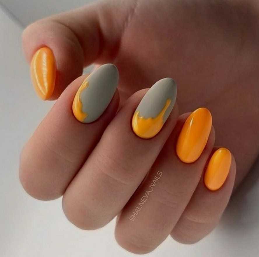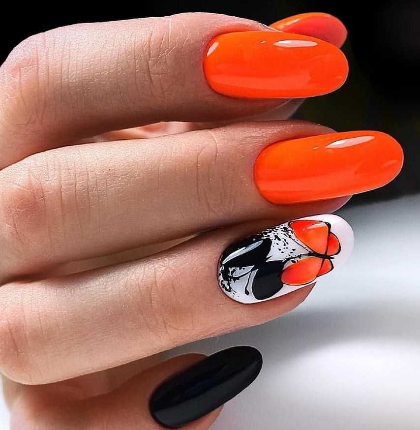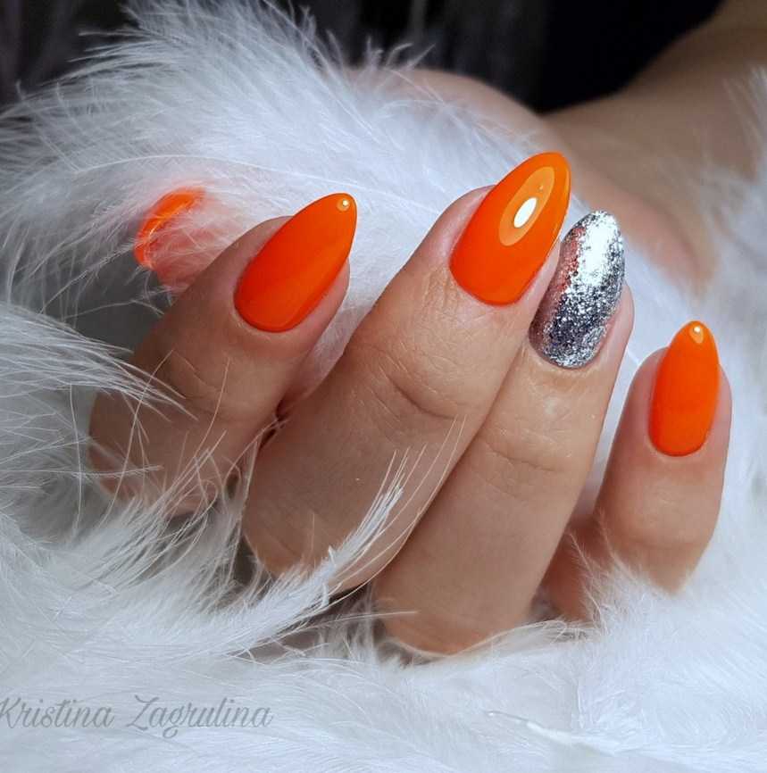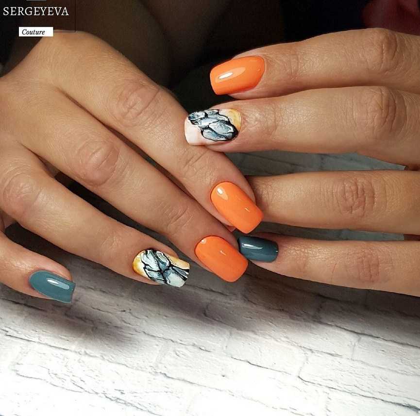 Дизайн ногтей оранжевого цвета, новинки 2019
