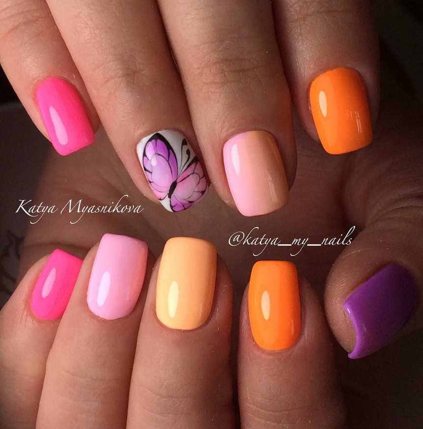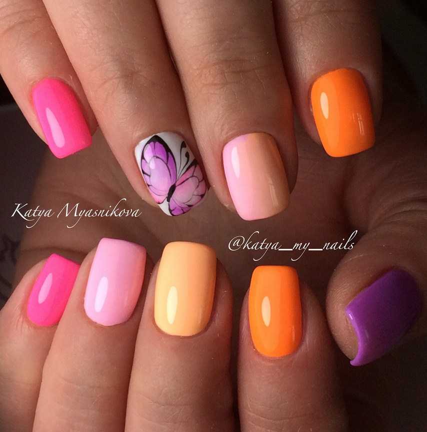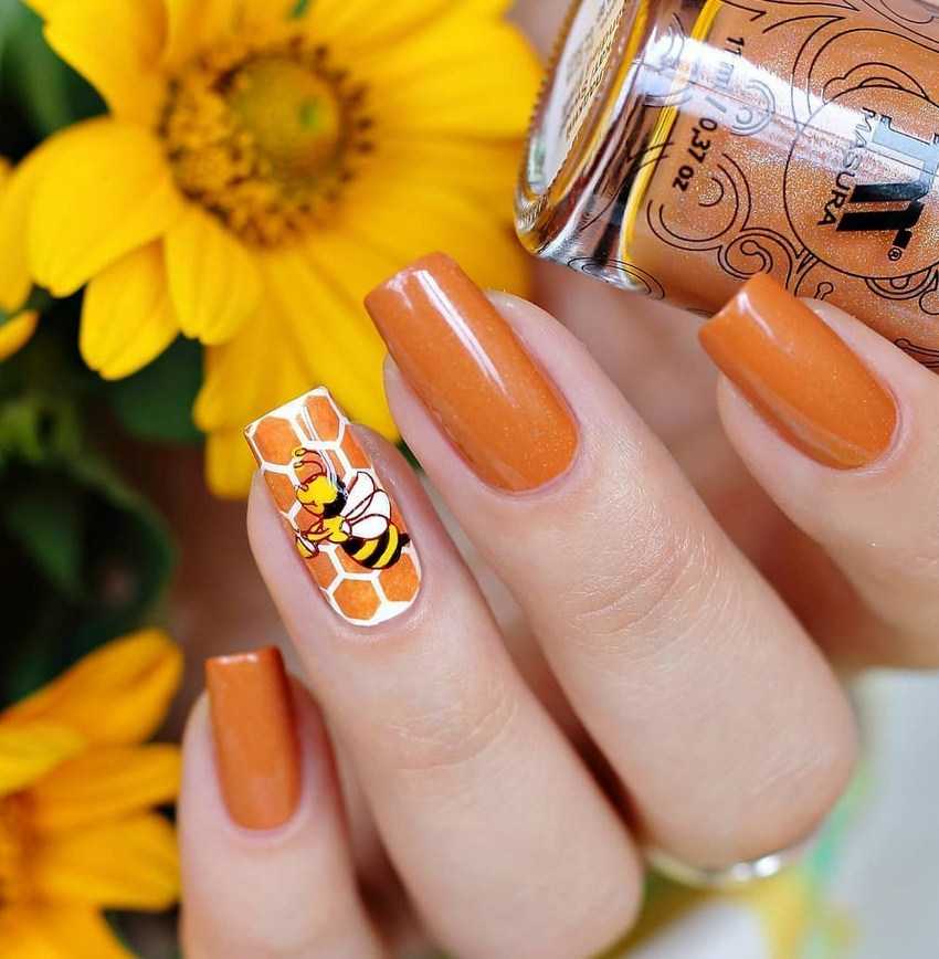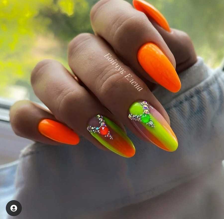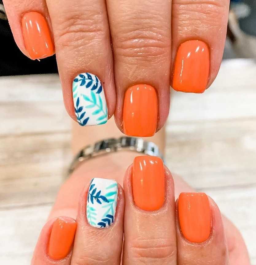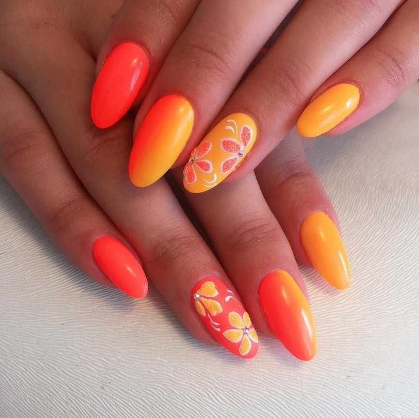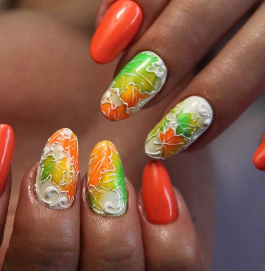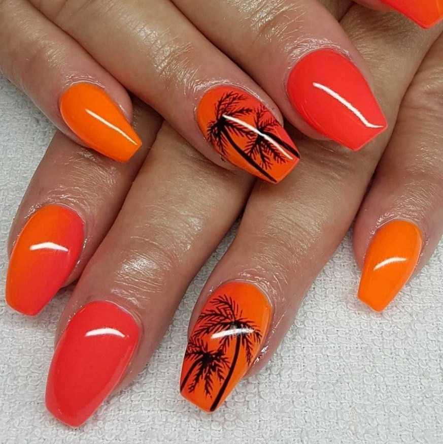 Дизайн ногтей оранжевого цвета, новинки 2019
