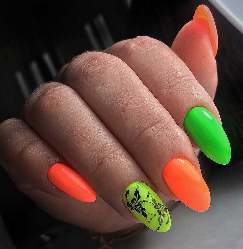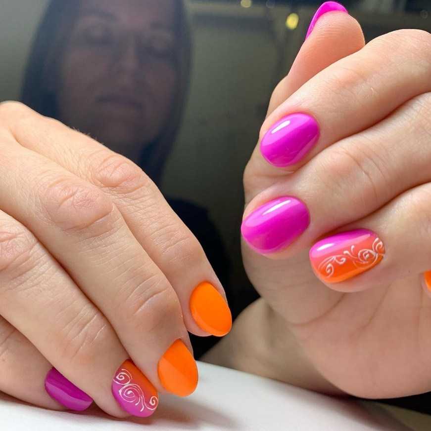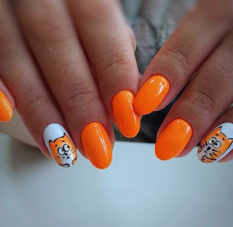 Существует множество интересных вариаций nail art для оранжевого маникюра. Благодаря этому вы можете создавать креативные и нетривиальные идеи у себя на ногтях.
