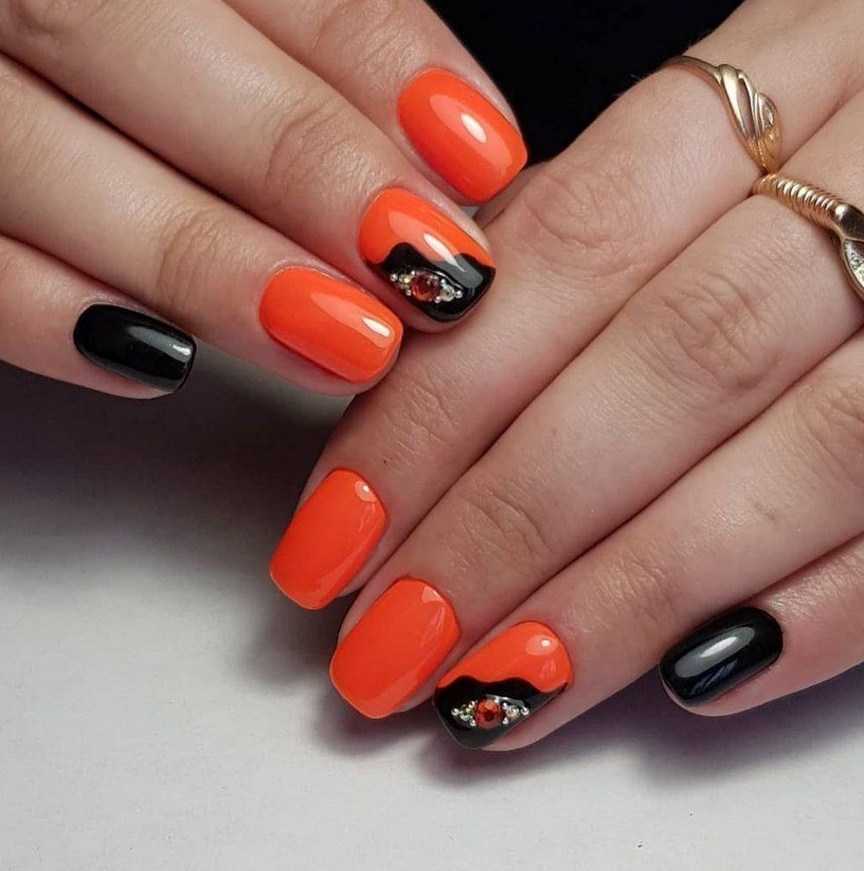 Оранжевый с черным маникюр – яркое и оригинальное сочетание, которое обычно используется в вечерних, праздничных образах