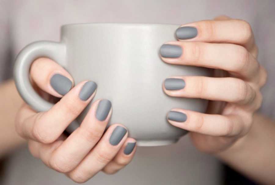 Создавая маникюр для делового серого платья, будьте осторожны с техниками, рисунками и декором. Не стоит сильно усердствовать. Тяготейте к минимализму. Прекрасной идеей может стать однотонный серый маникюр, в том числе и матовый, мраморный дизайн, геометрические мотивы и оформление с помощью фольги/скотч-ленты.