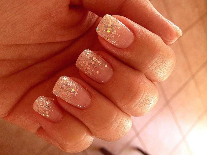 Самый простой способ — сделать в домашних условиях отделку с блестками. Для этого необходимо нанести лак на ногтевую пластину и равномерно распределить его. Далее сухие блестки необходимо распределить кисточкой по краю ногтя. В конце концов, необходимо нанести еще один слой прозрачного лака. Это обеспечит хороший рисунок.