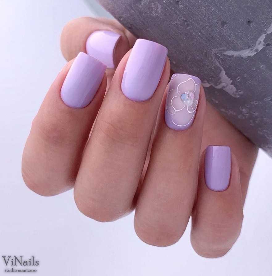 Так как маникюр лавандового цвета прекрасно сочетается со многими нюансами,