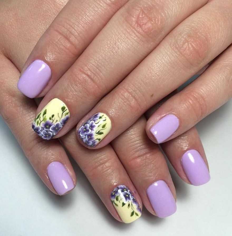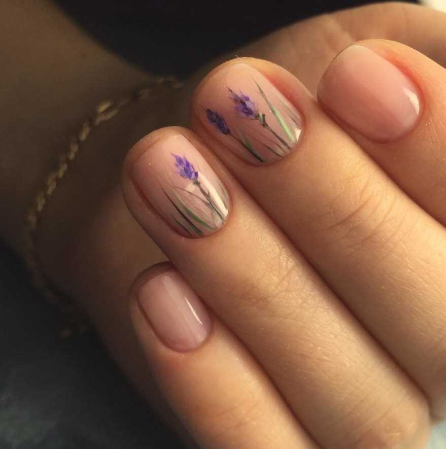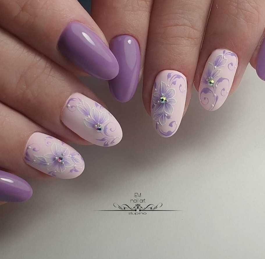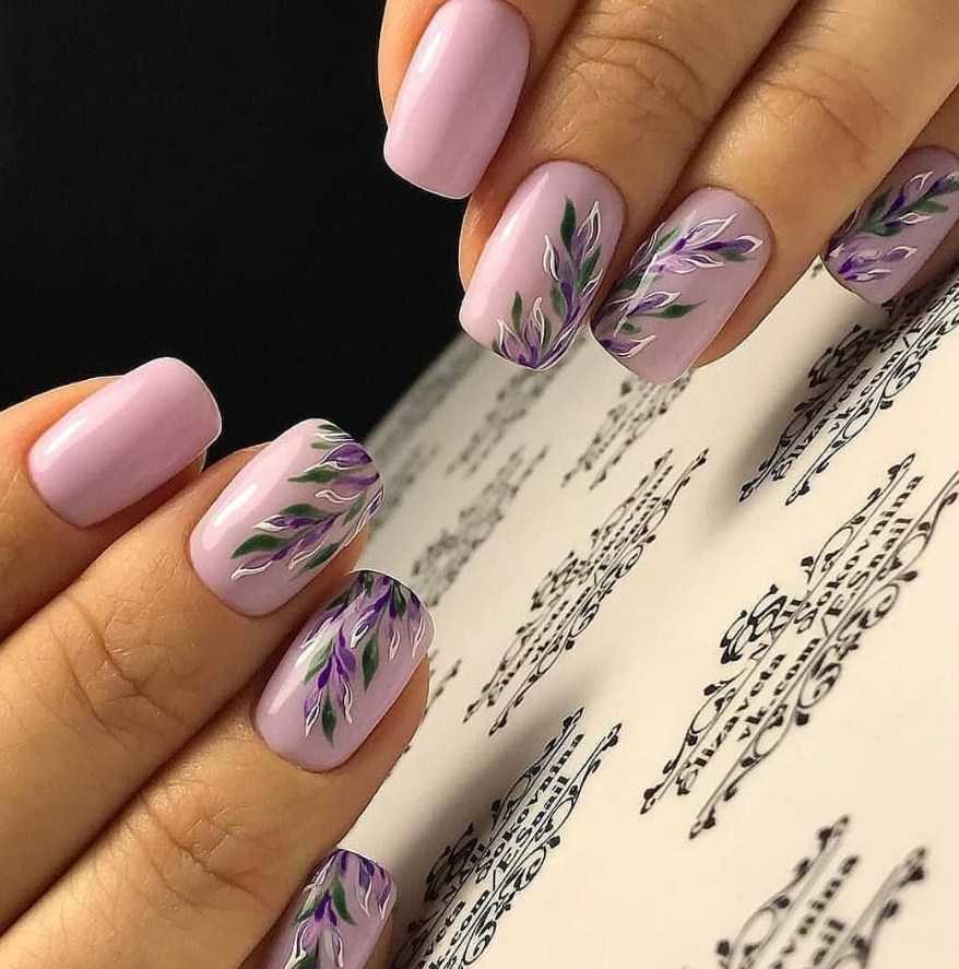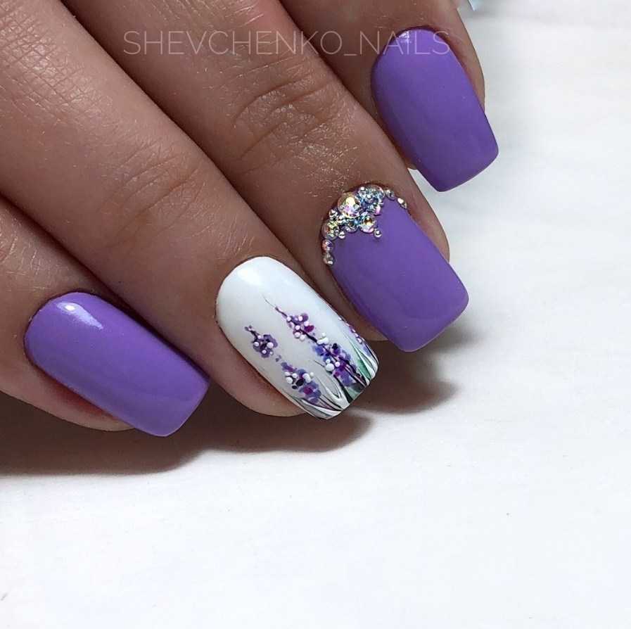 Идеи лавандового маникюра с рисунком
