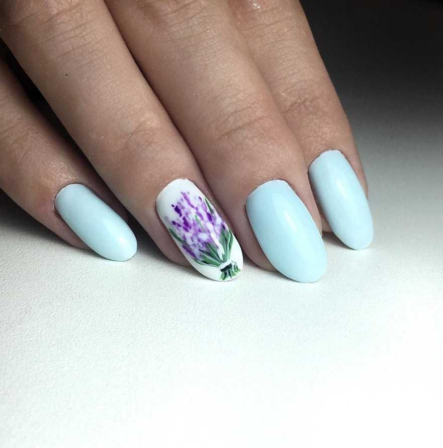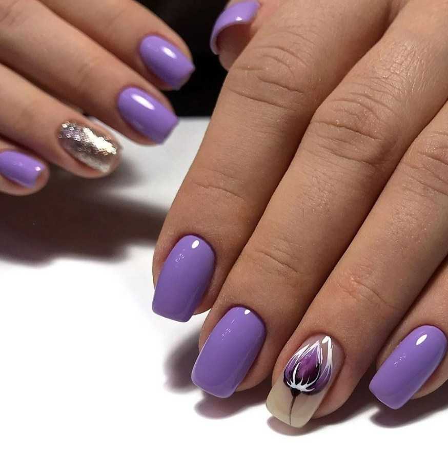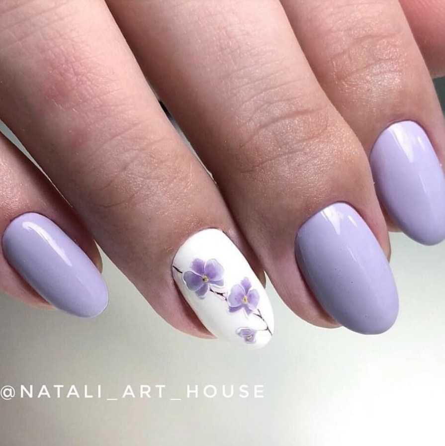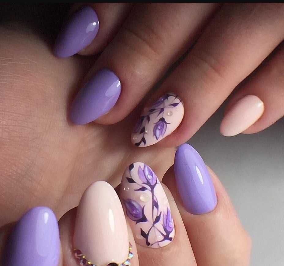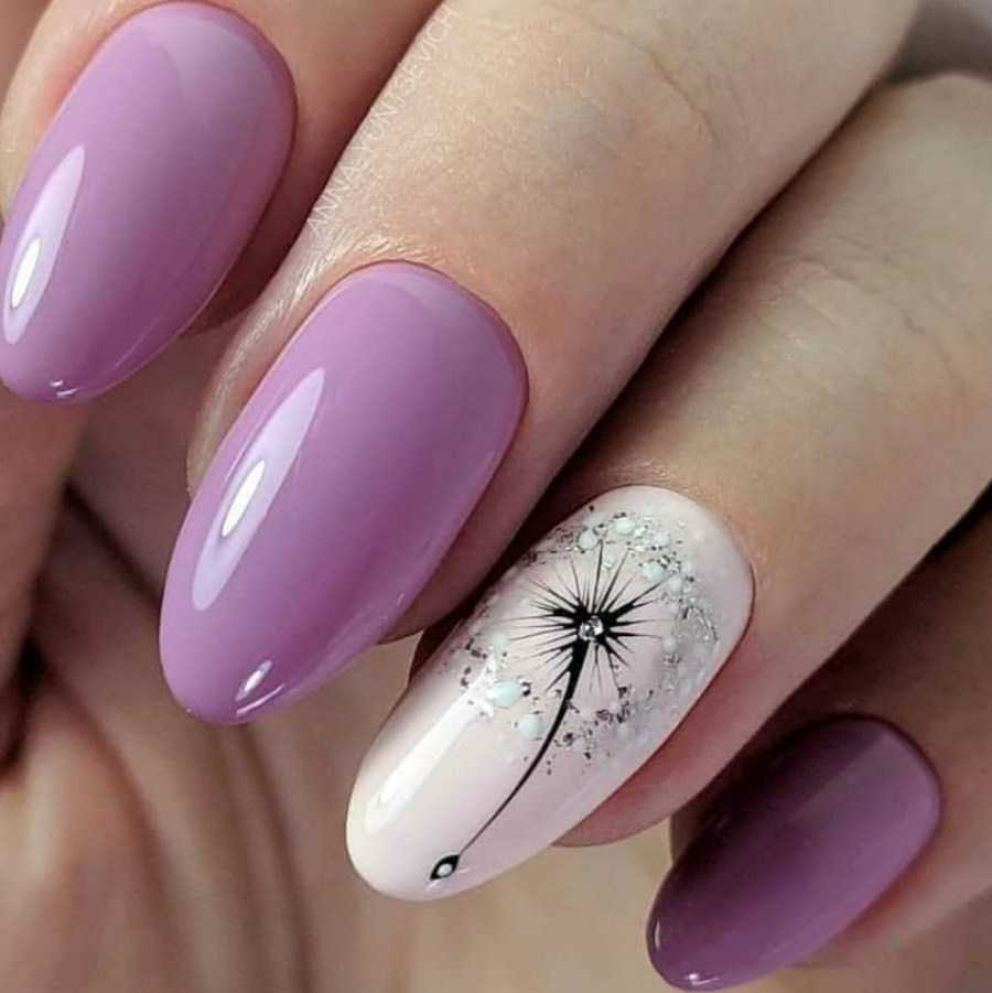Идеи лавандового маникюра с рисунком
