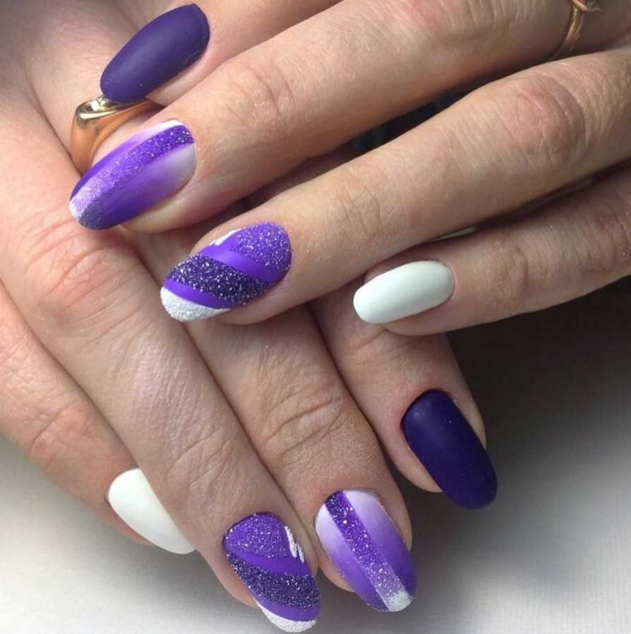 Белый и фиолетовый маникюр