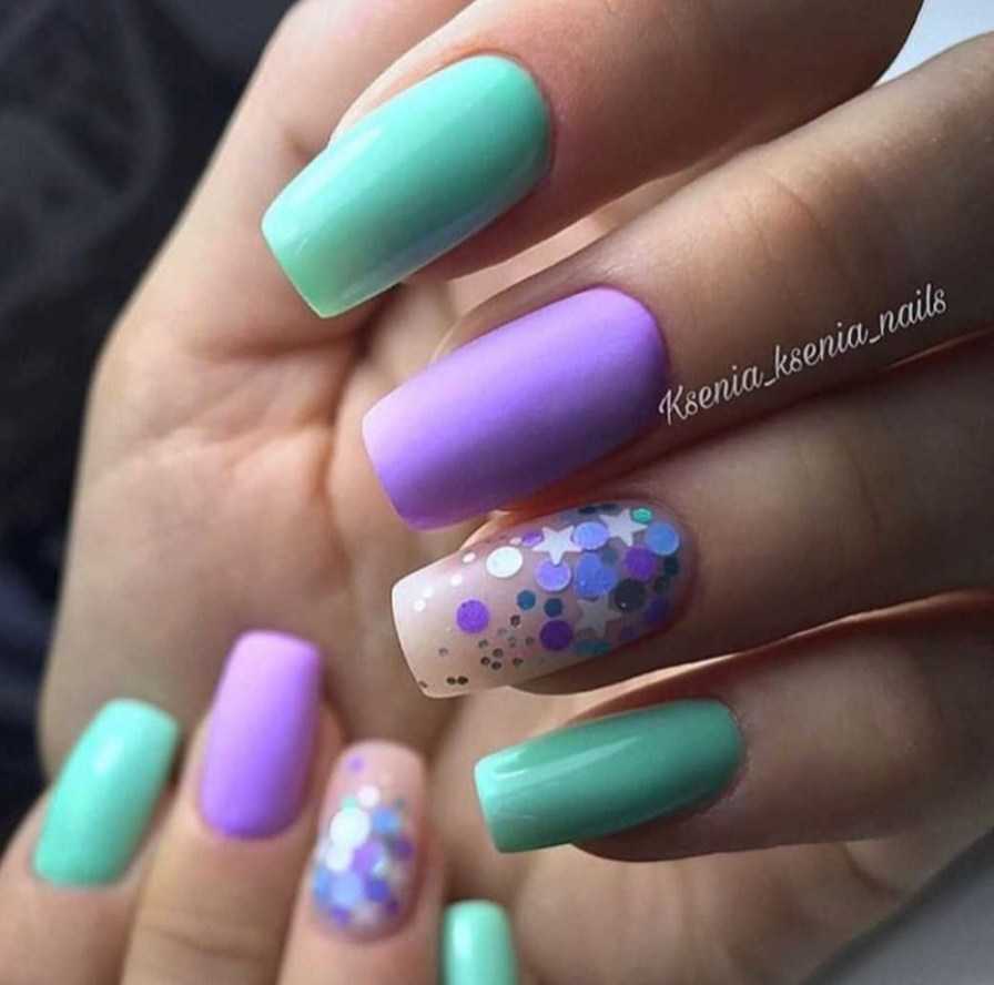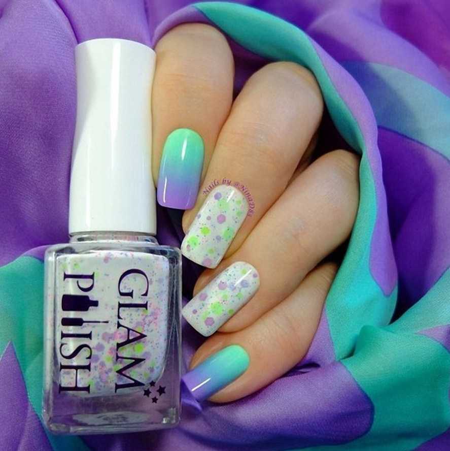 Сиренево-бирюзовый маникюрСиренево-бирюзовый дизайн ноготков