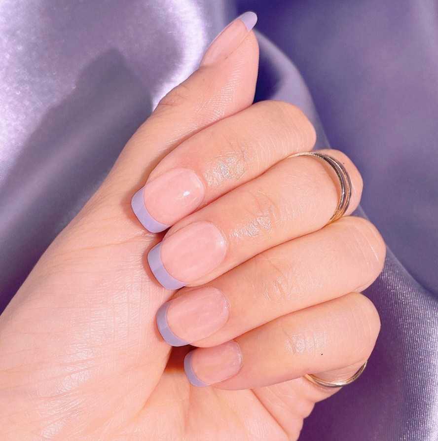 Французский маникюр с добавлением нежной лаванды выглядит свежо и стильно. Причем он не ограничивается лишь вариантом: нюдовая основа и фиолетовый френч.