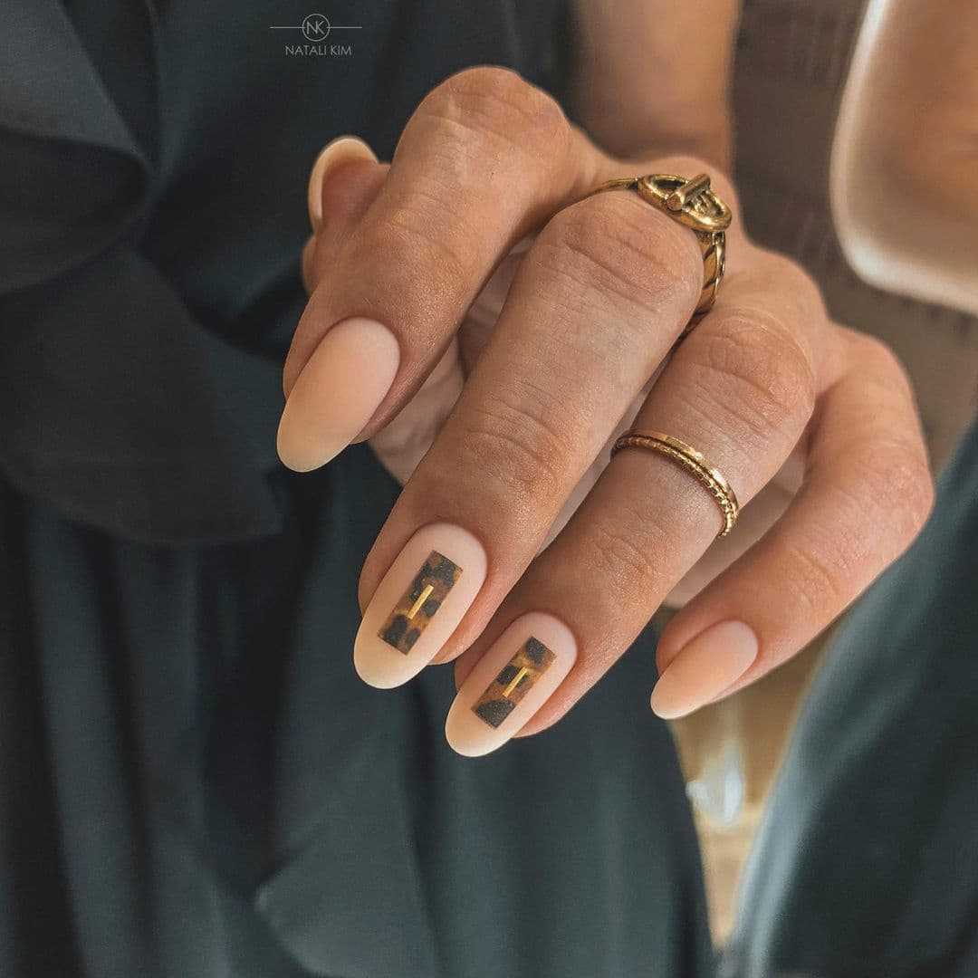 Это должны быть небольшие оттиски на ногтях, нанесенные поверх бежевой, карамельной, пурпурно-розовой или молочной подложки.