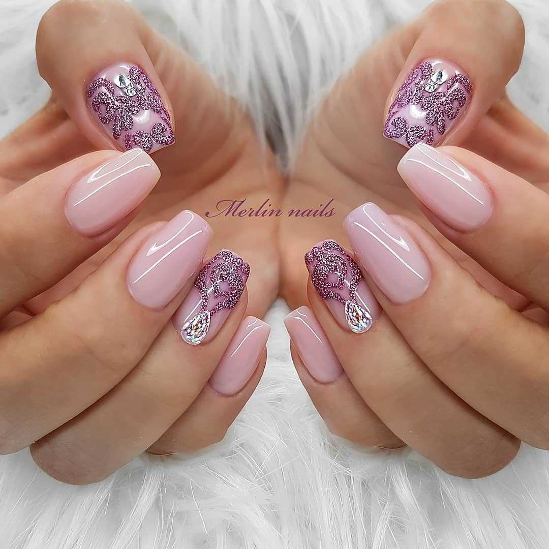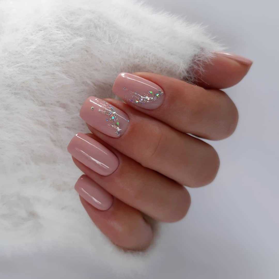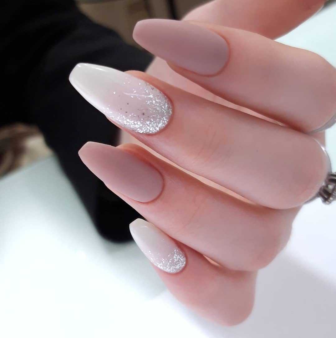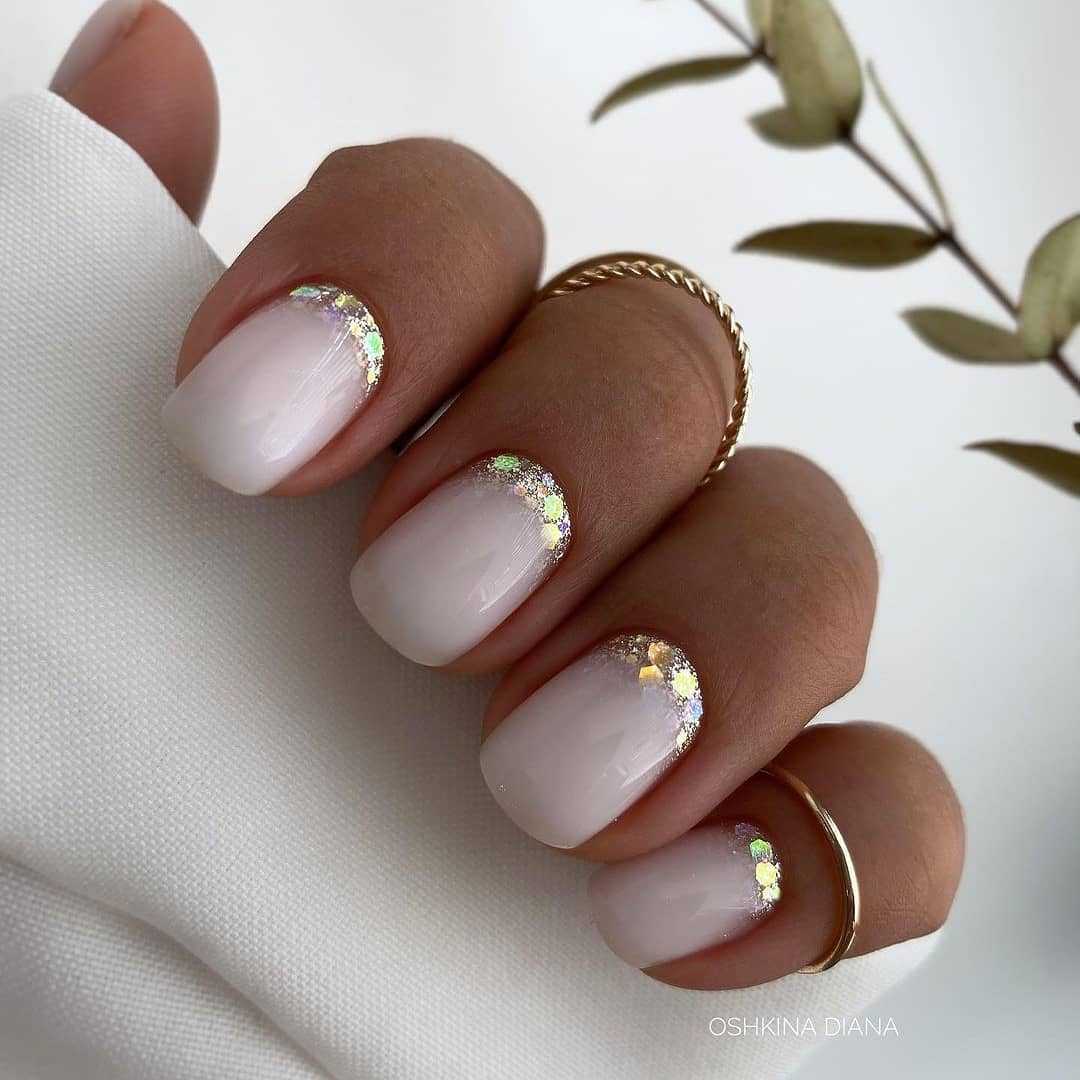 - нежнейшие вариации нюдового маникюра с глиттерной растяжкой и втиркой;