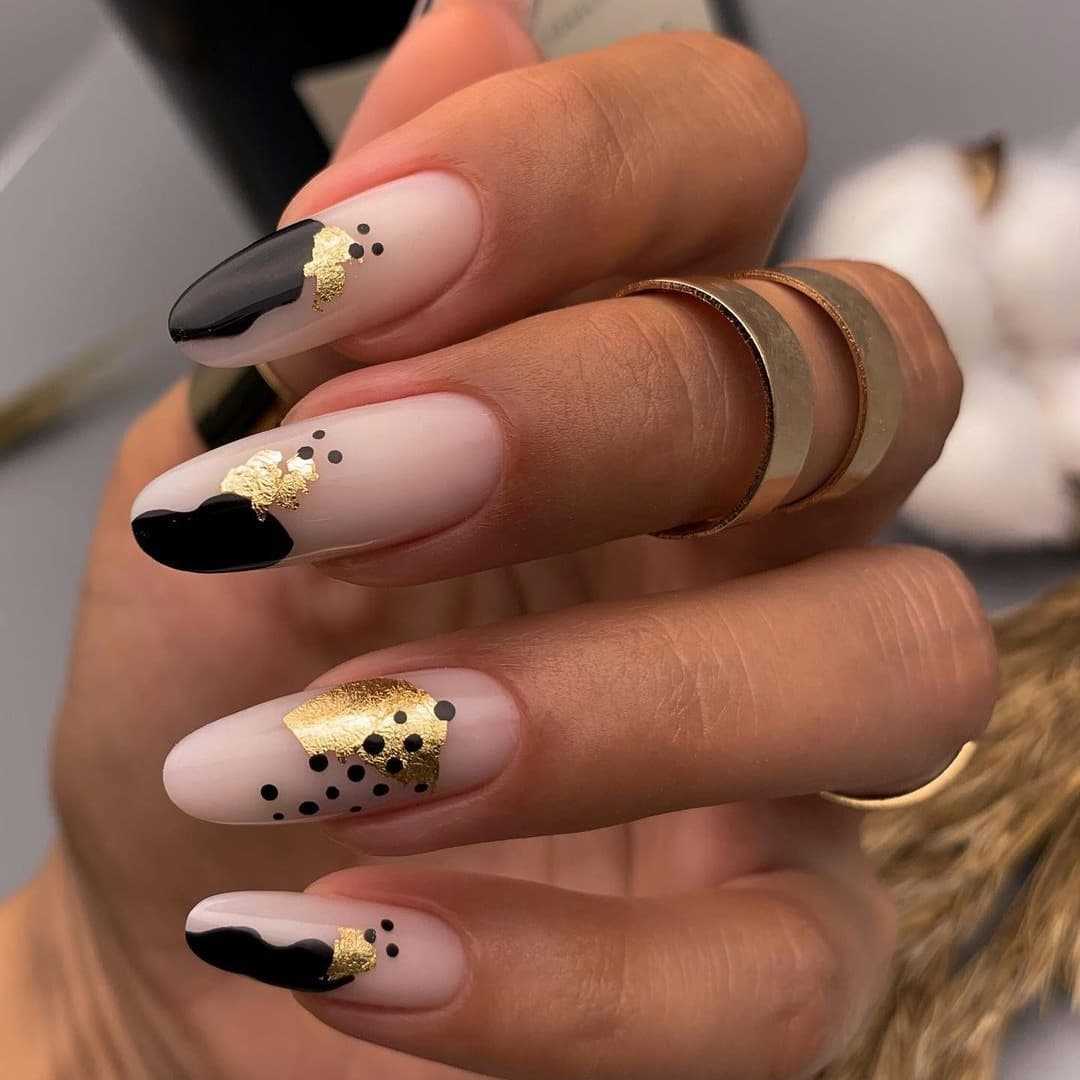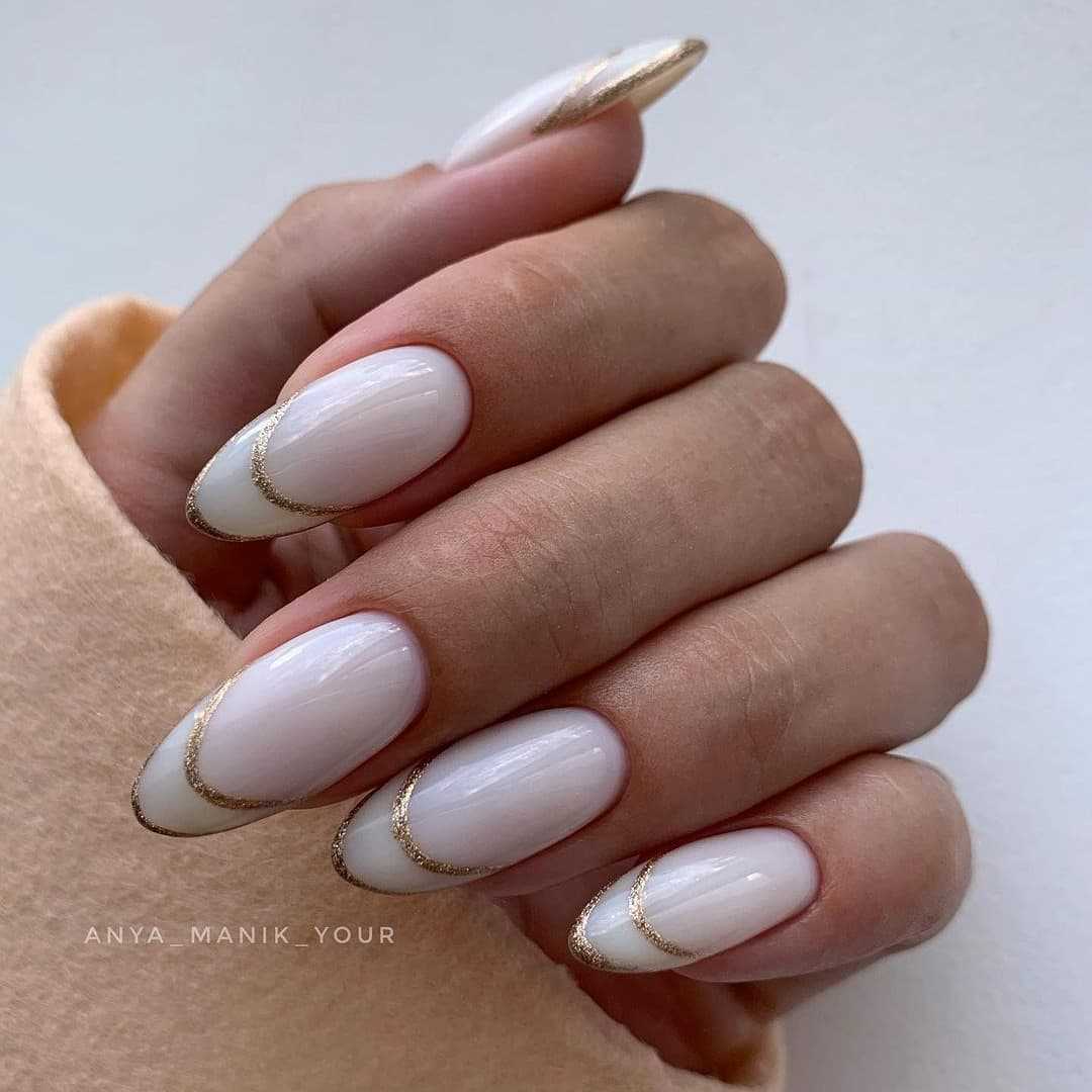 Маникюр в стиле Энн Хэтэуэй – отличный вариант для Нового года. Легкий эффект омбре визуально удлиняет ногти, а золотые вкрапления напоминают брызги шампанского и создают праздничное настроение.