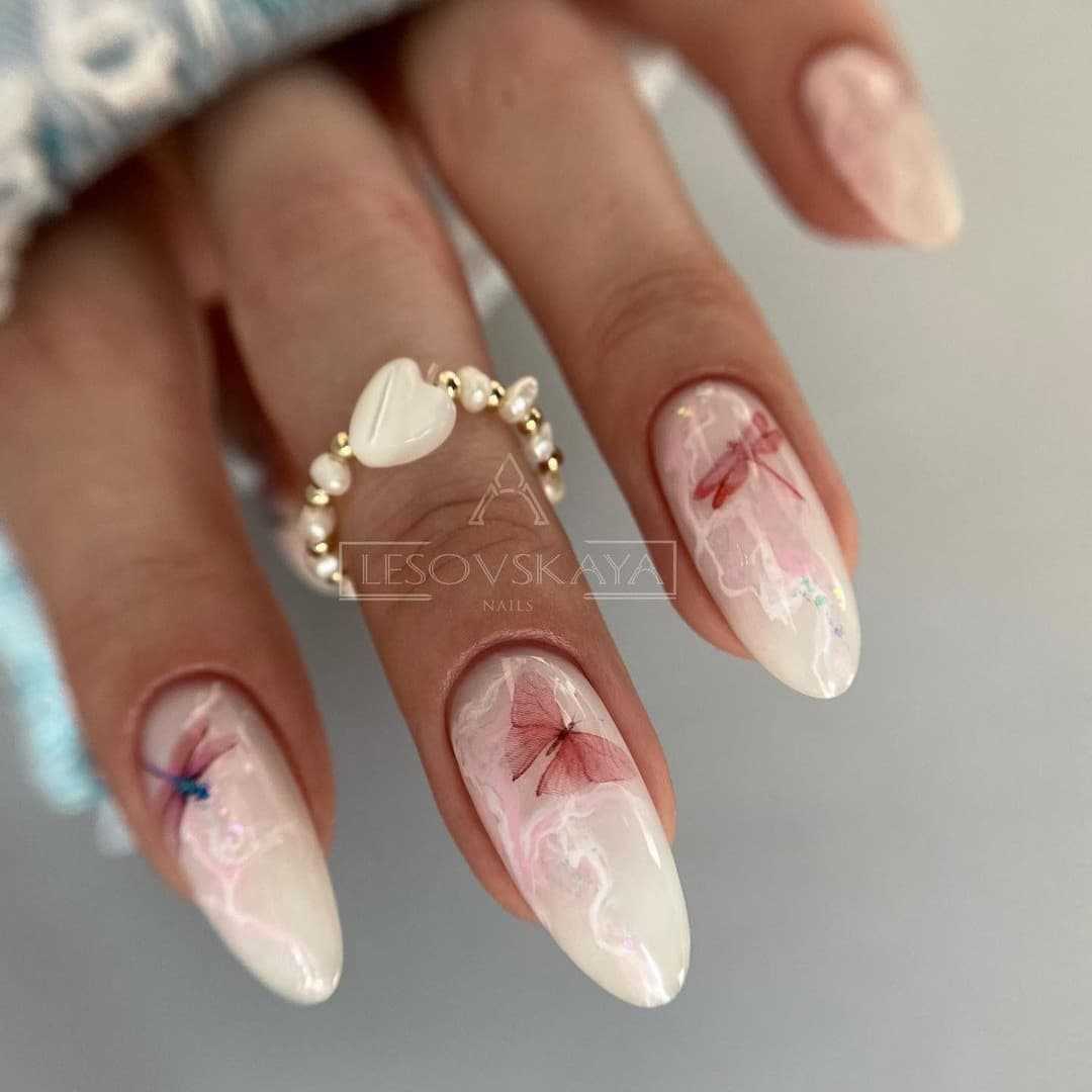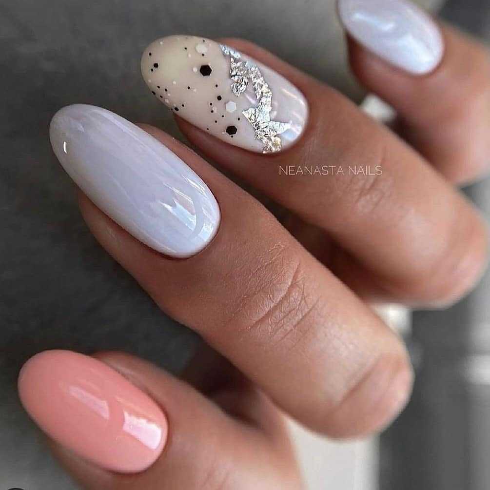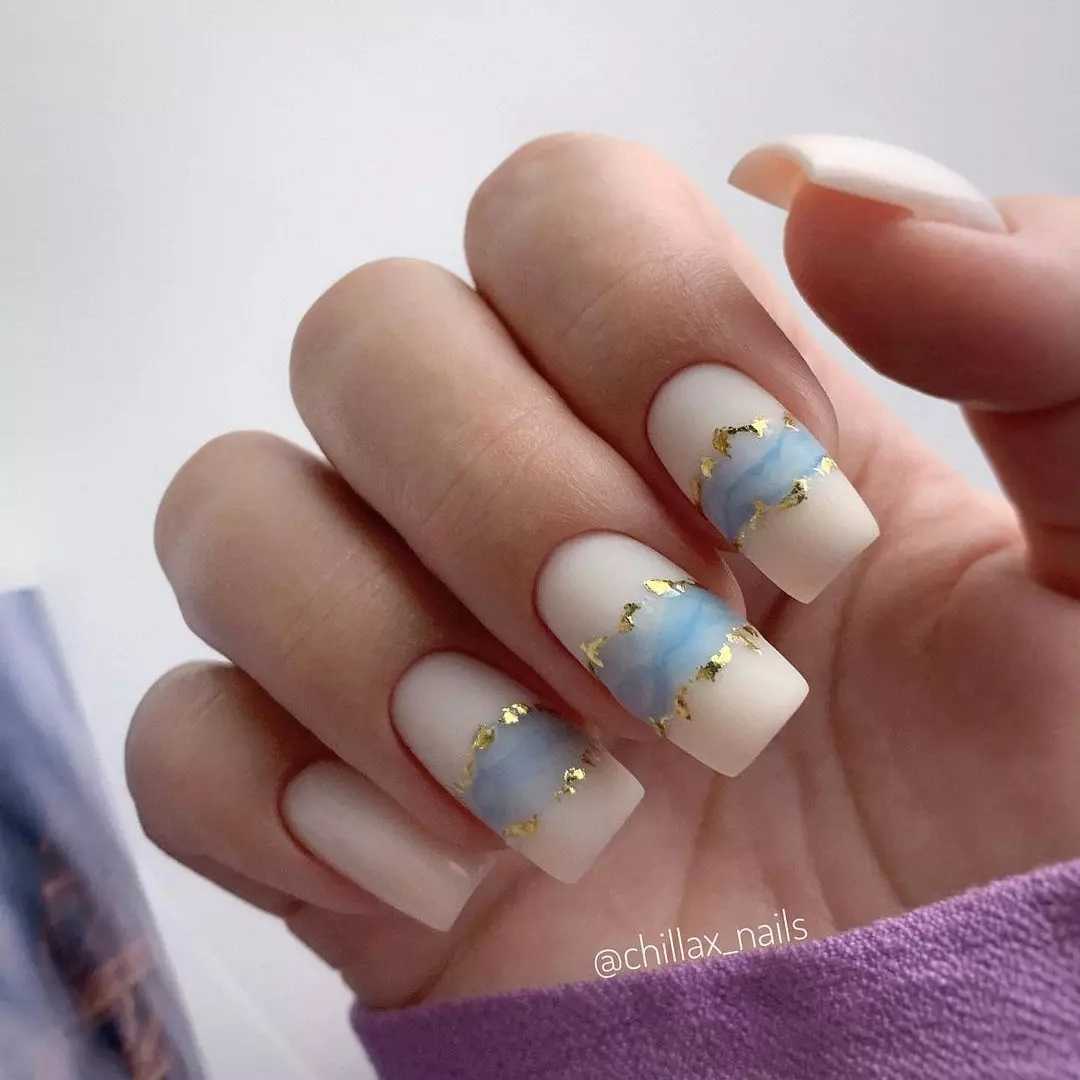 Мраморный нюдовый маникюр влюбляет в себя с первого взгляда, отличаясь особой изящностью и воздушностью. Особенно красиво смотрится, если использовать в качестве основы персиковый гель-лак. С таким дизайном можно смело отправляться на любое мероприятие и впечатлять окружающих.