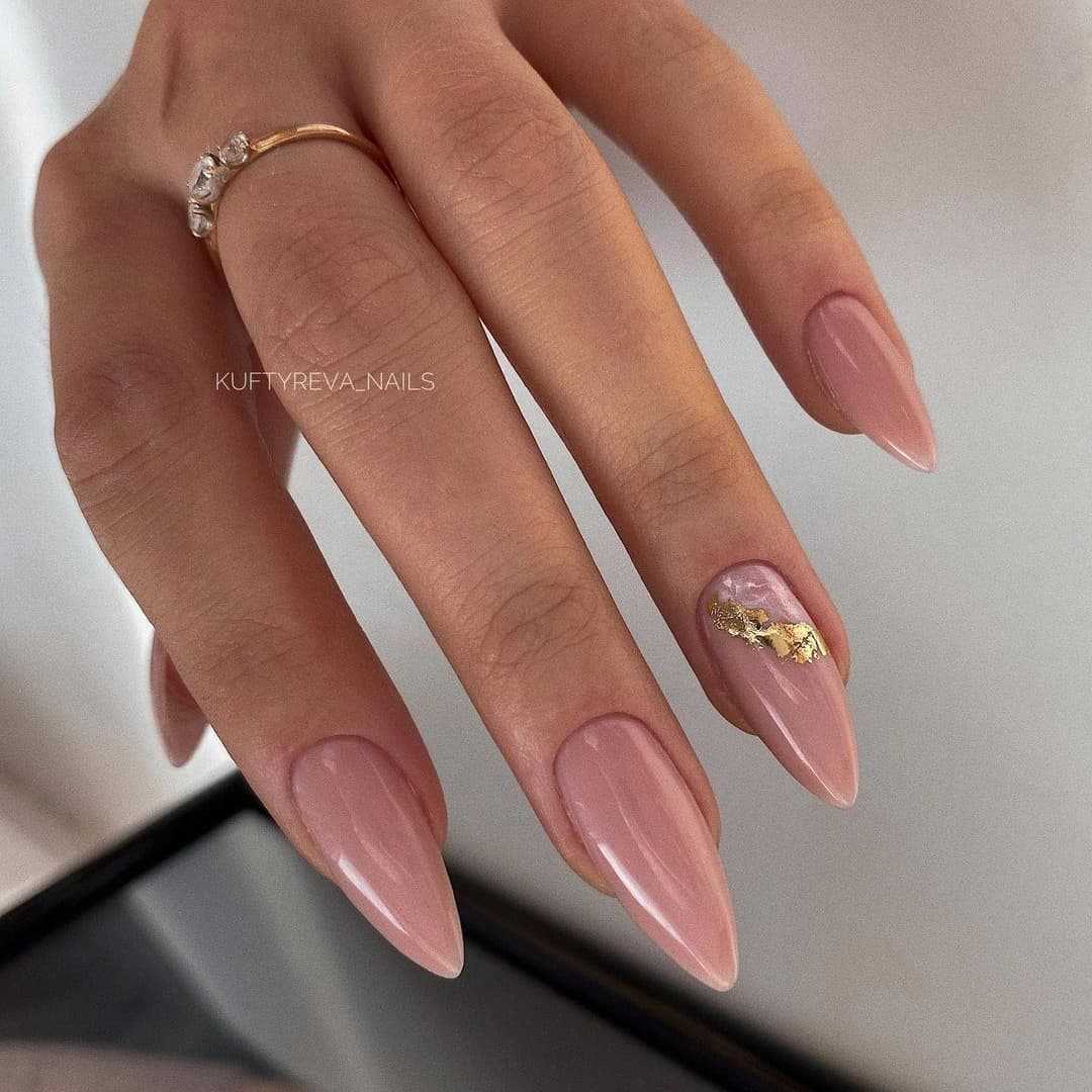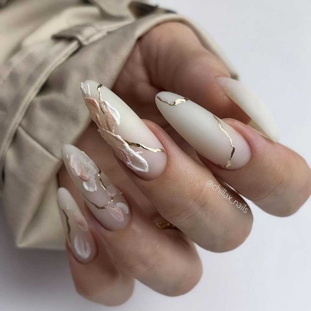 Примеры оформления нюдового нейл-арта на длинные ногти