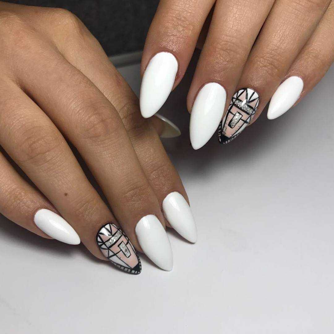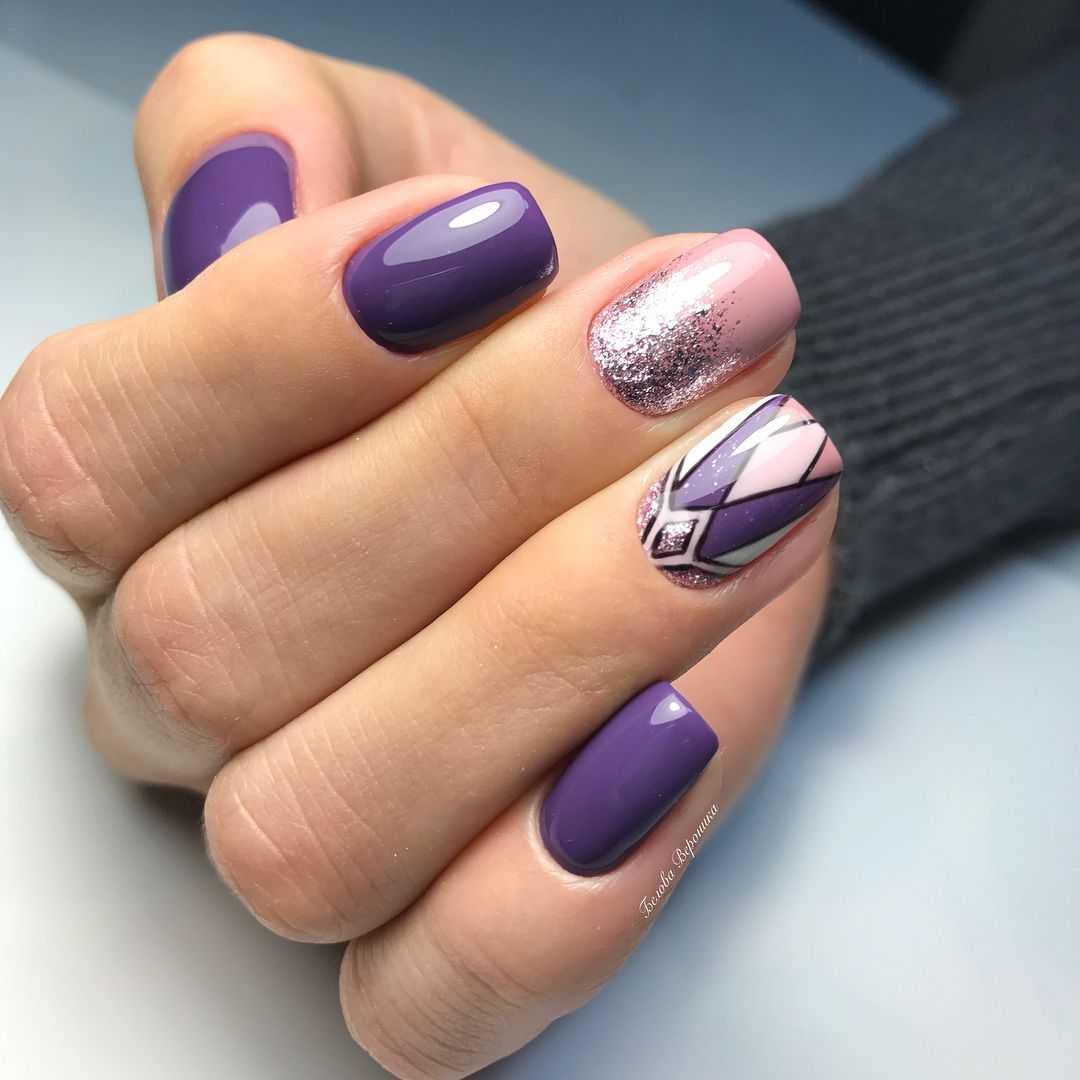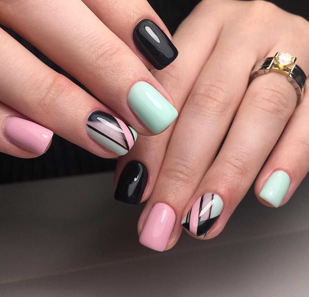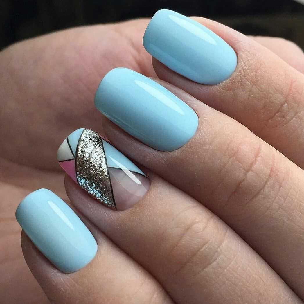 Самой удачной техникой в данном случае будет геометрия. Необычные фигурки разных размеров и форм придадут вашим рукам нотку стиля. Нейл-мастера рекомендуют использовать не более трех оттенков и пару фигур или линий, расположенных в разном направлении. Также в этом дизайне актуальны точки, цветочные узоры, веточки и аккуратные завитушки.