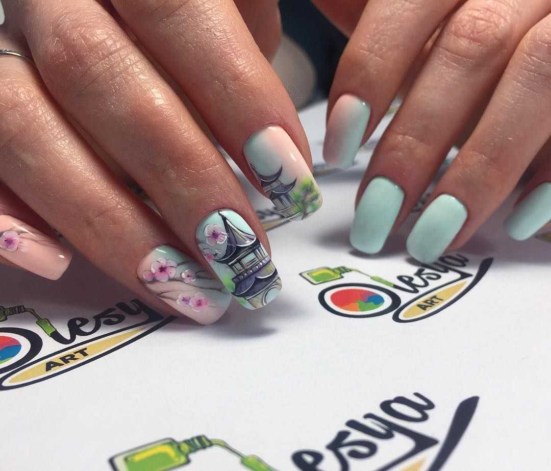 #1 Маникюр в японском стиле: сакура, пагода, иероглифы