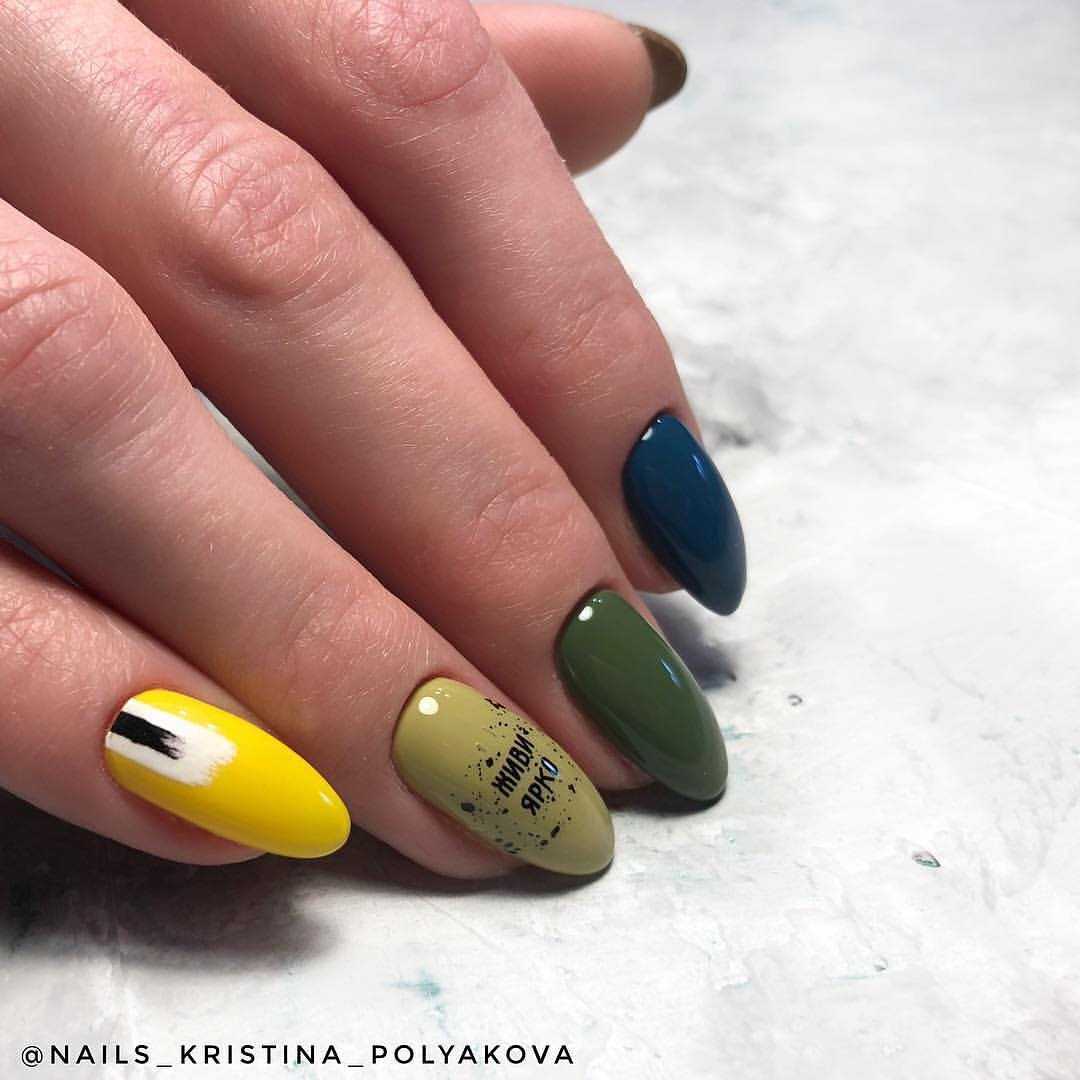 Либо можно написать свою любимую фразу, со своего употребления. То придаст вашему образу индивидуальности. А когда вы являетесь патриотом своего государства, отобразите это на ноготках. К примеру, напишите название страны на фоне национальной расцветки.