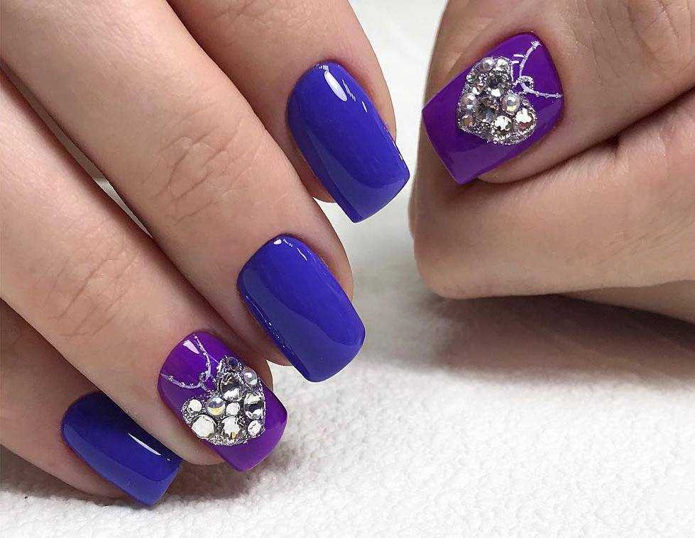 Не менее оригинально смотрится маникюр со стразами или металлической фольгой в виде сердца. В общем, среди всего разнообразия вовсе не сложно найти подходящий для себя вариант.