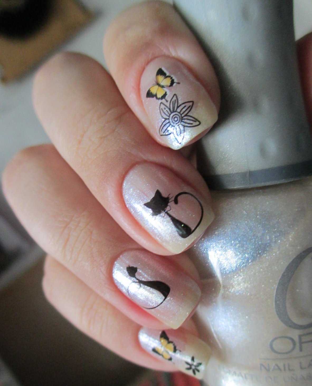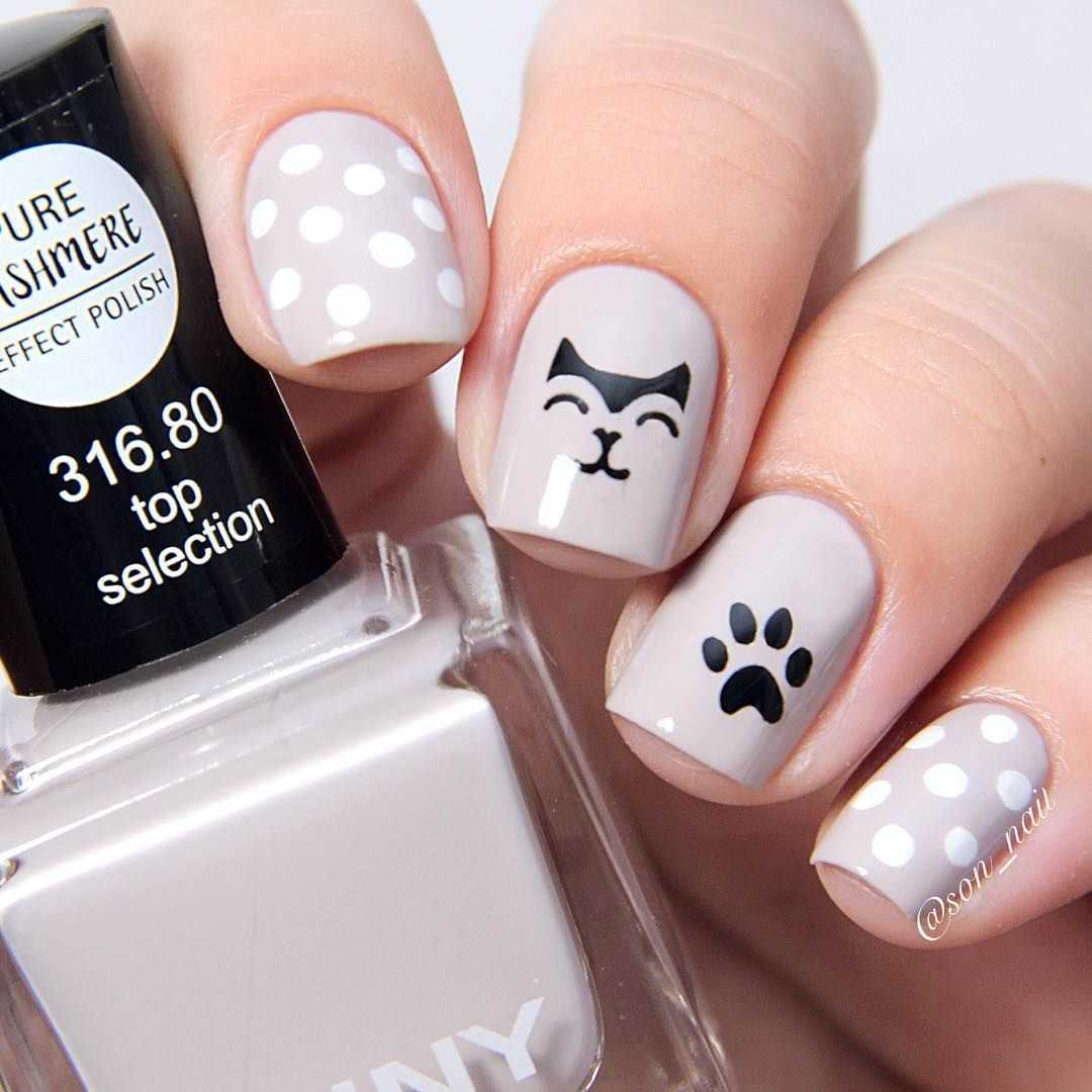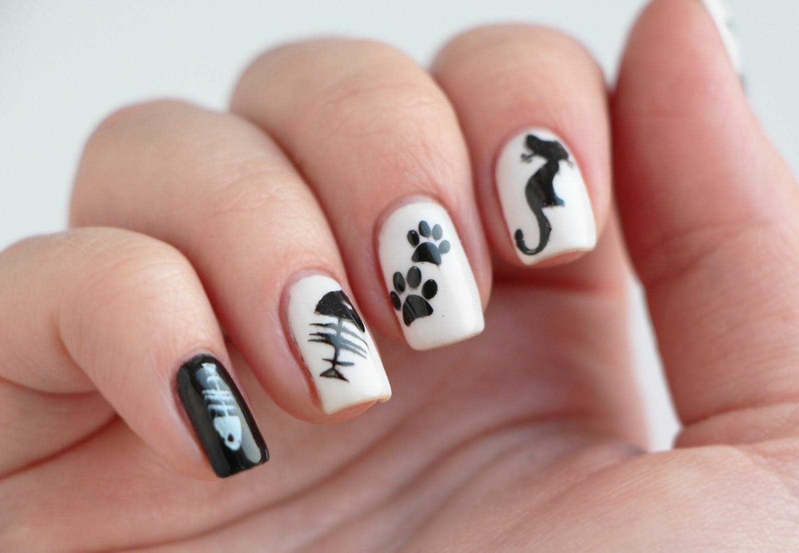Кстати, вы всегда можете сочетать несколько рисунков. Например, кошачьи следы или рисунок лапок и силуэт животного. Чаще всего рисунки размещают на разных ноготках.