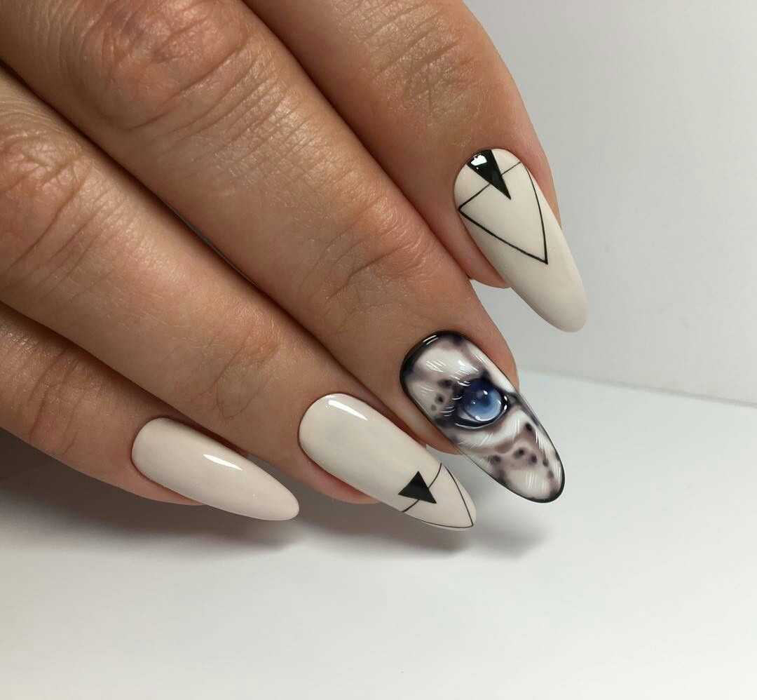 Не менее удачным будет такой маникюр на миндалевидных ногтях, которые триумфально возвращаются в моду в новом сезоне.