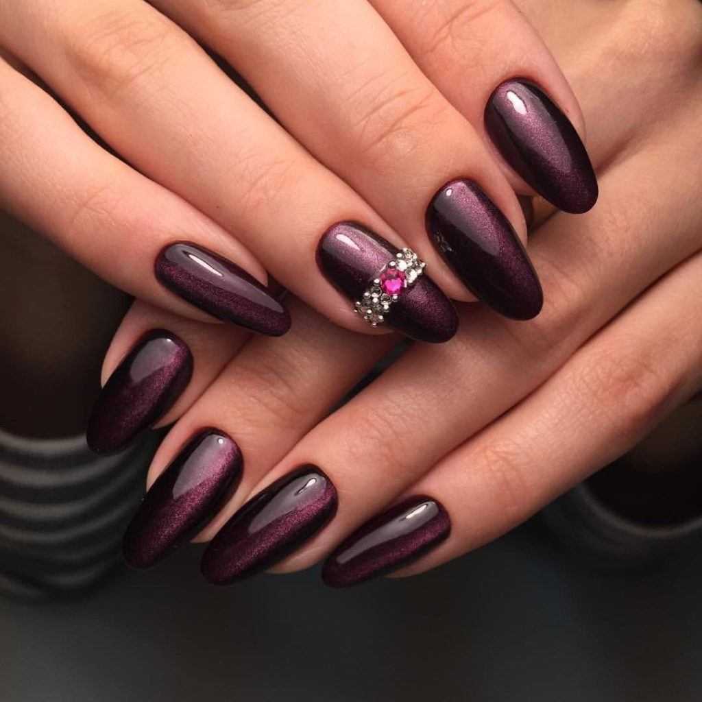 Матовый. Фактурное бархатное покрытие принято использовать нынче во всех дизайнах. И кошачий глаз не стал тому исключением. В данном маникюре матовым финишем можно покрыть несколько пальцев или даже всю руку.