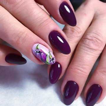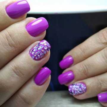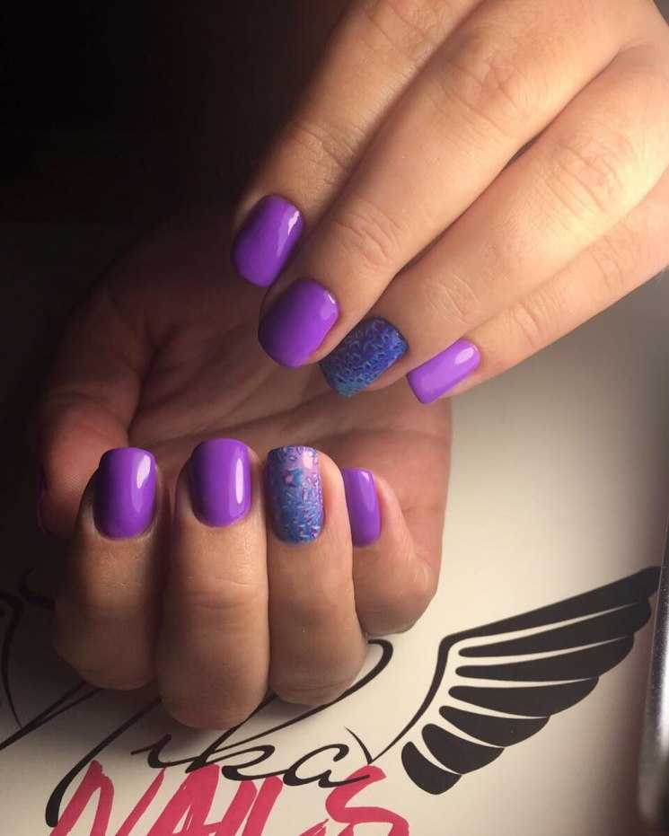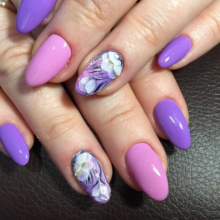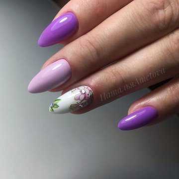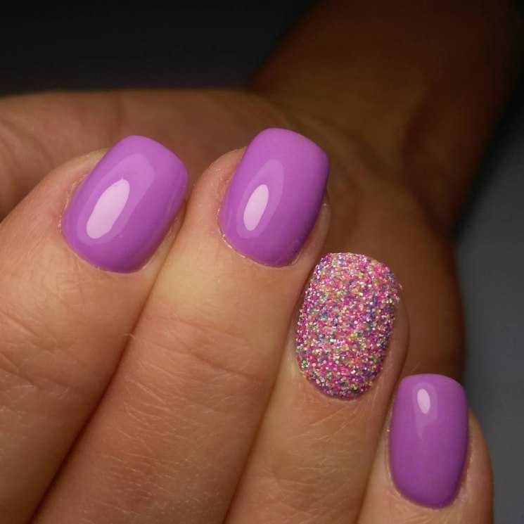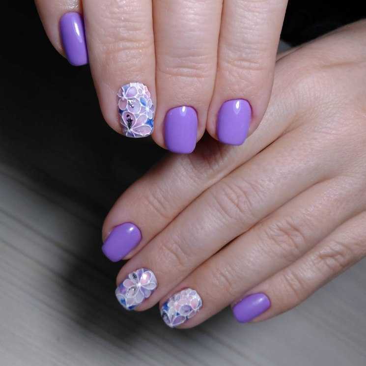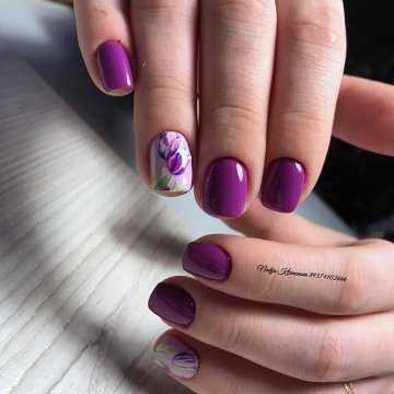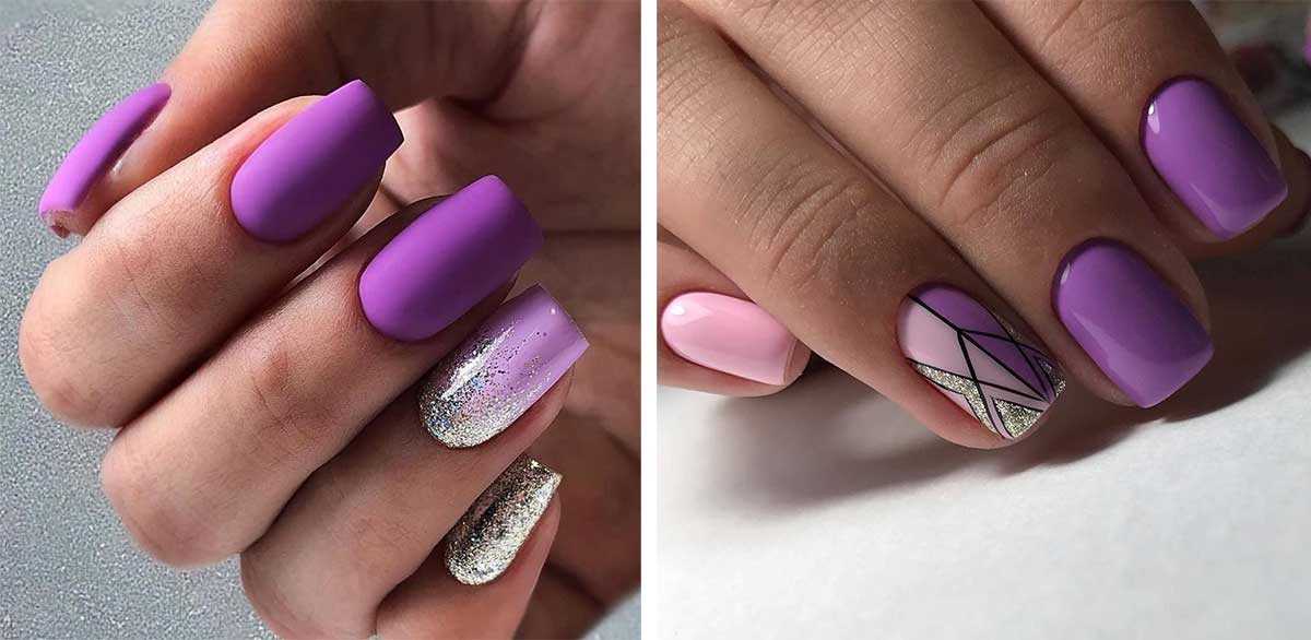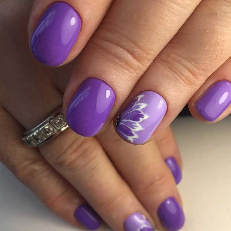 Чтобы грамотно подобрать сочетающиеся между собой цвета, стоит посмотреть на фото лилового маникюра. Цветовая палитра может зависеть лишь от полета фантазии.