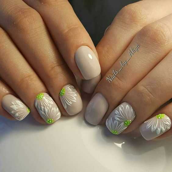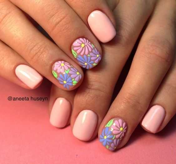 Цветы на коротких ногтях: модные рисунки 2021-2022, фото-идеи