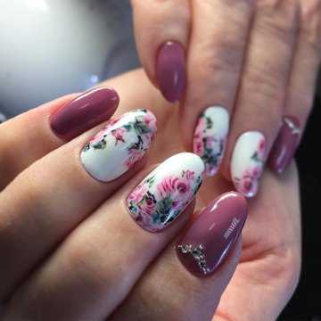 Комбинирование цветочных рисунков, френча или нюдового (нейтрального по цвету) маникюра, смешивания различных техник, покрытий и цветочных композиций не оставит равнодушной ни одну женщину или девушку.