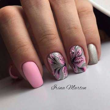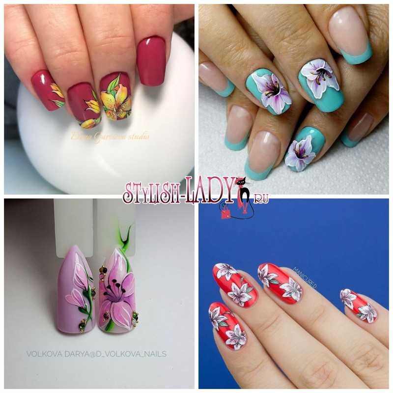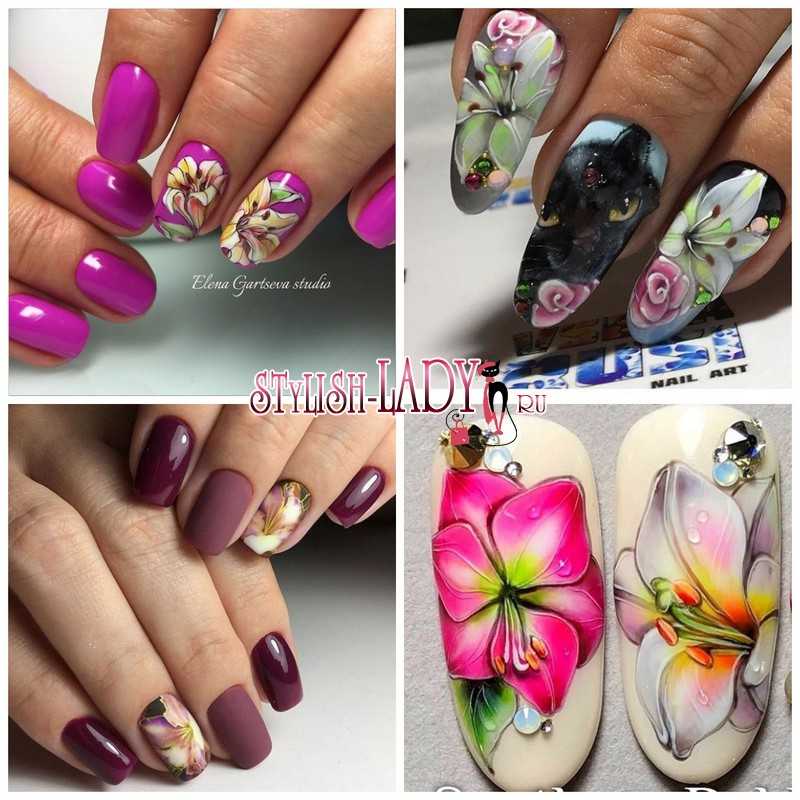 Маникюр с лилиями имеет шикарный, благородный вид. Он относится к тем видам нейл-дизайна, который никогда не потеряет своей актуальности. Созданный с применением новых техник, он станет отличным дополнением любого женского образа.
