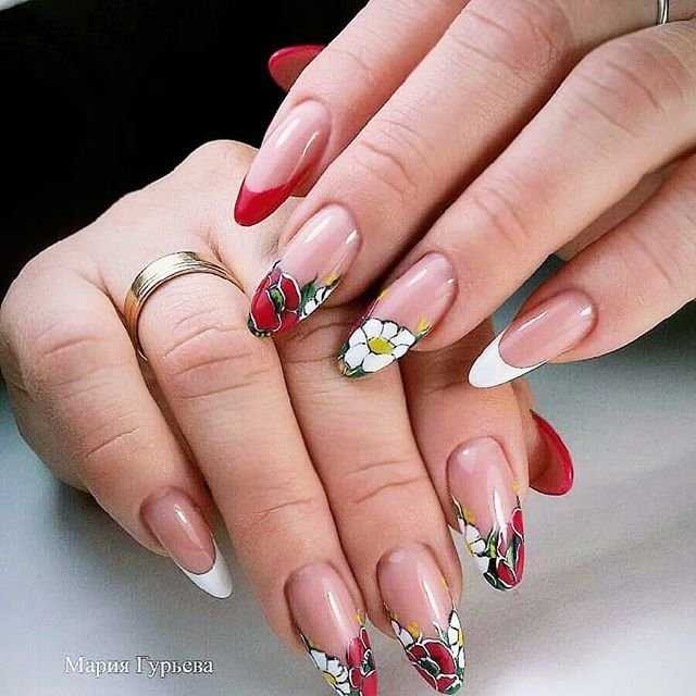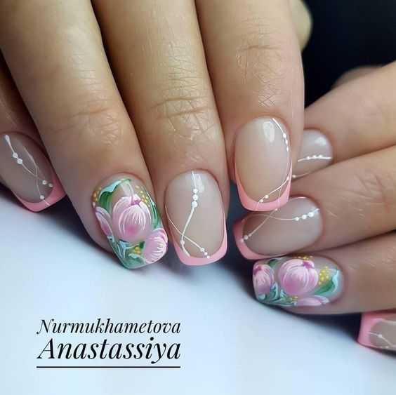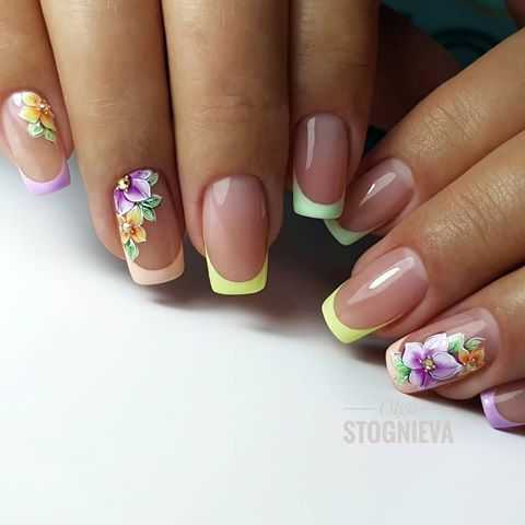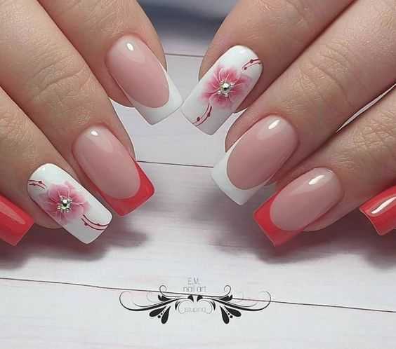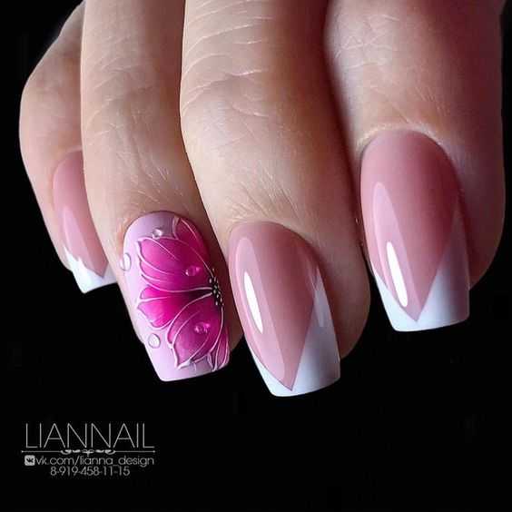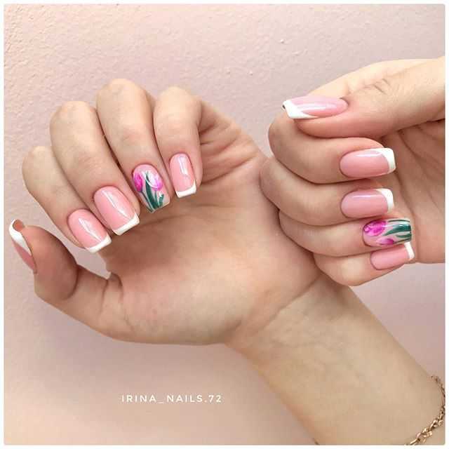 Красивый френч с цветами: фото-новинки французского маникюра 2021-2022