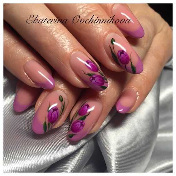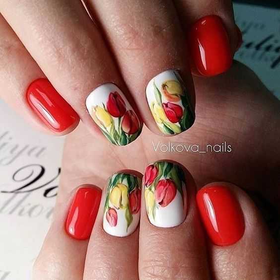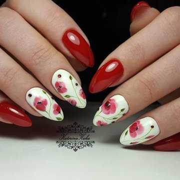 Среди наиболее популярных цветочных принтов считаются маки, тюльпаны, сакура и др. Вот несколько примеров, как изобразить эти цветы на ногтях.