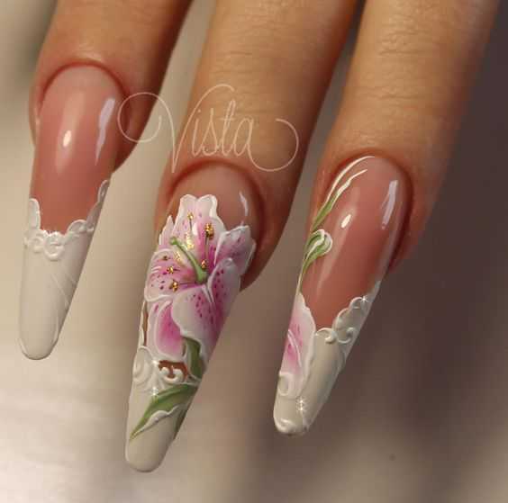 Даже самым суровым леди иногда хочется добавить в свой облик нотку нежности и романтики. Красивая лилия на ногтях является символом мягкости и неповторимого женского очарования. Сделать такой маникюр можно как в салоне, так и самостоятельно, воспользовавшись представленными на фото идеями.