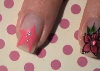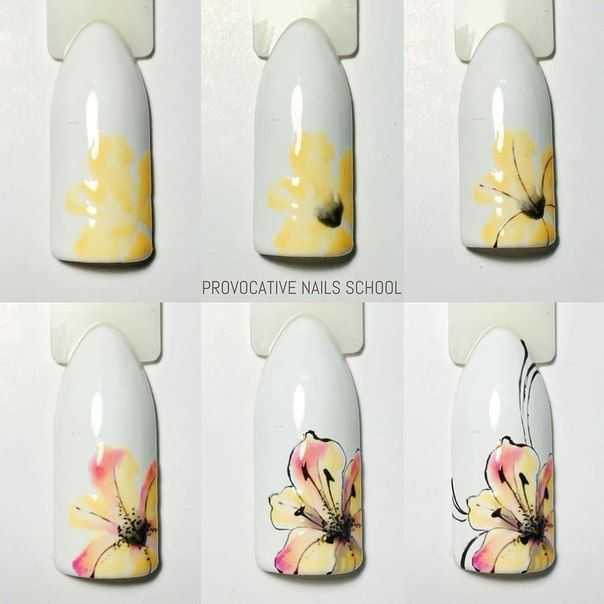 - При нанесении цветочного узора на цветную основу, оставляйте не закрашенным по одному миллиметру по бокам ногтя