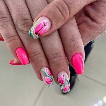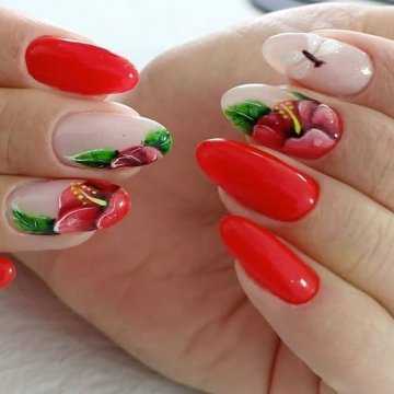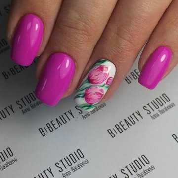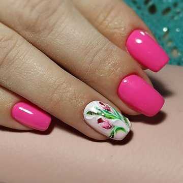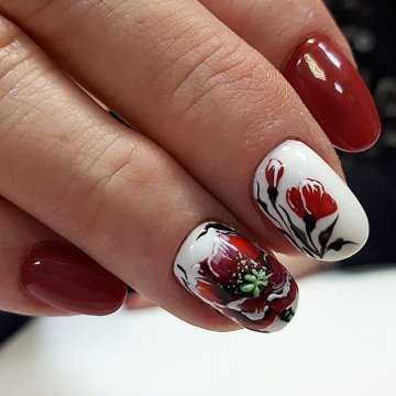 Дизайнеры предлагают множество вариантов оформления ногтей. Изобразить можно один цветок или целый букет, при этом фрагменты одной композиции можно расположить на двух-трех ногтевых пластинах.