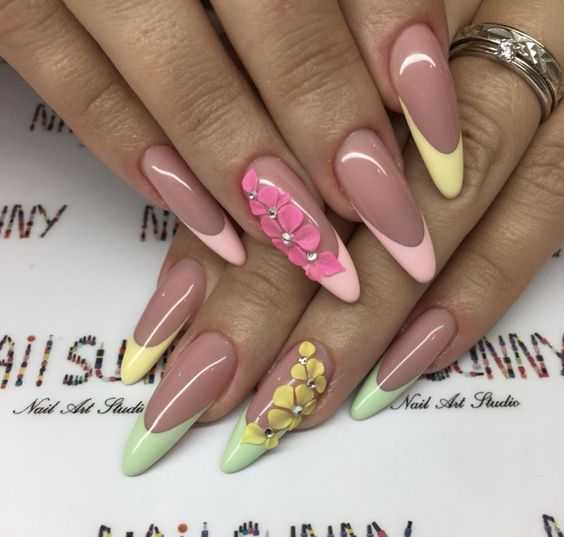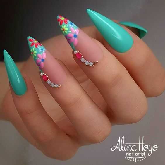 Цветы на длинных ногтях: модные рисунки 2021-2022, фото-идеи