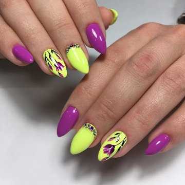 С приходом лета также изменились и общие тенденции в дизайне ногтей. Сейчас наши ноготки должны быть покрыты радостными и яркими цветами лаков — выбирайте все фруктовые, цветочные и травяные оттенки. Красочный, неоновый лак для ногтей является хитом этого сезона и подходит для всех тонов кожи.