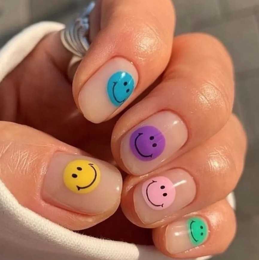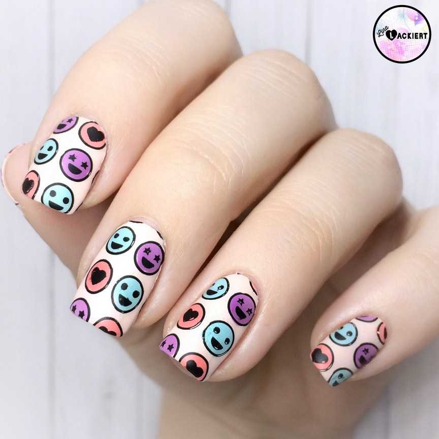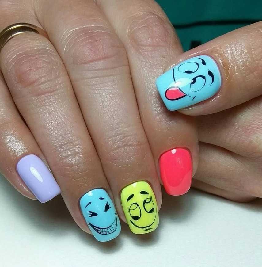 Немного радости в вашей жизни придаст маникюр с юморными надписями, и применив в качестве украшения смайлики (смешные мордочки).