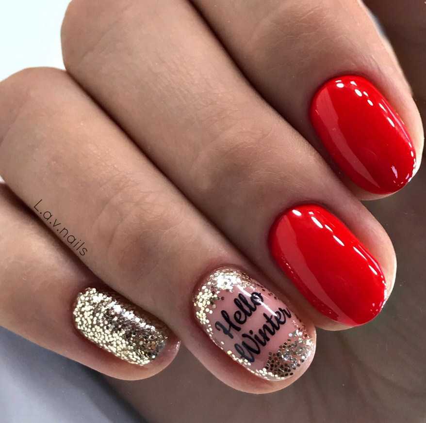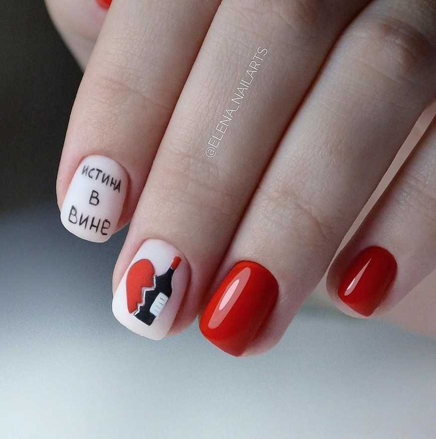 Маникюр, который подходит на 14 февраля, красный и с надписью love