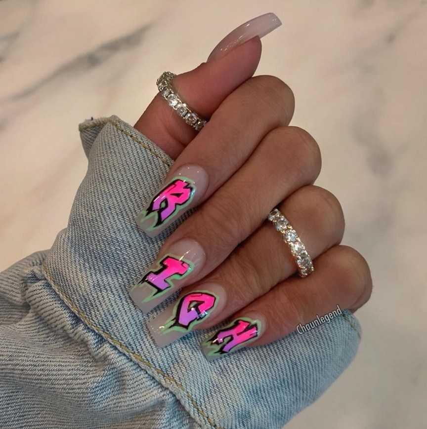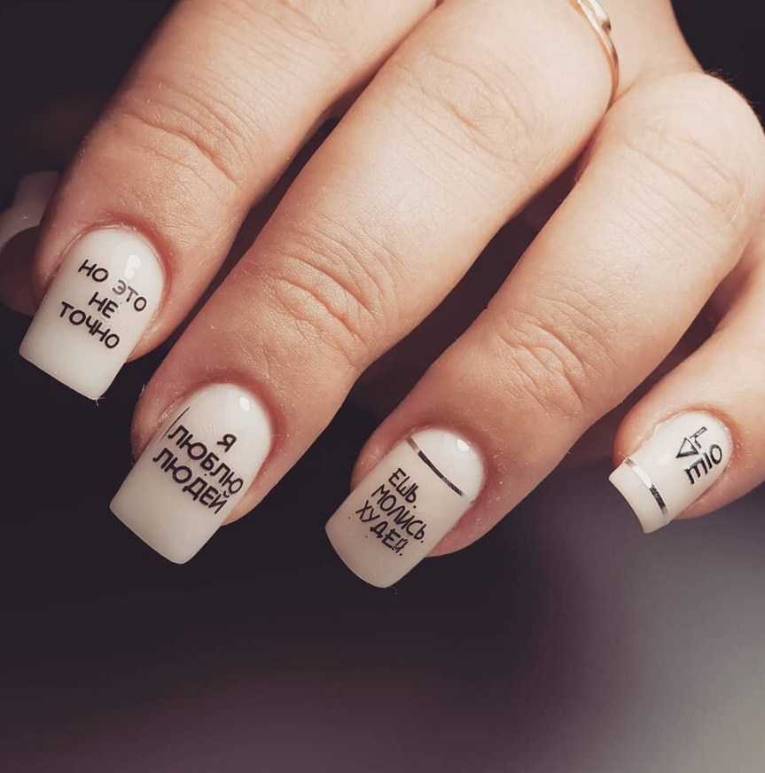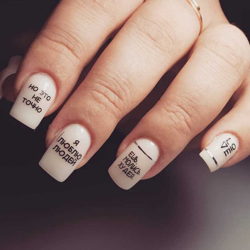 Маникюр с надписями на ногтях — самые прикольные и молодёжные идеи 2023