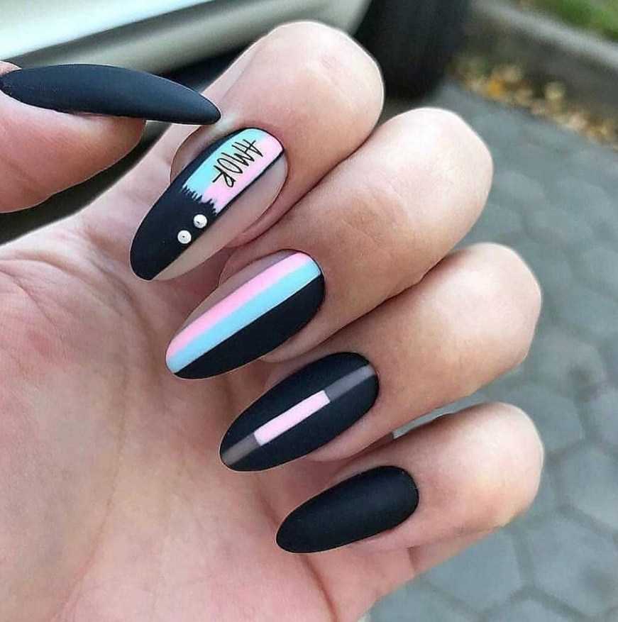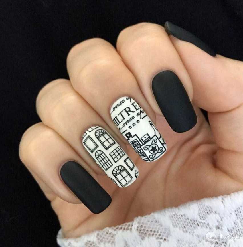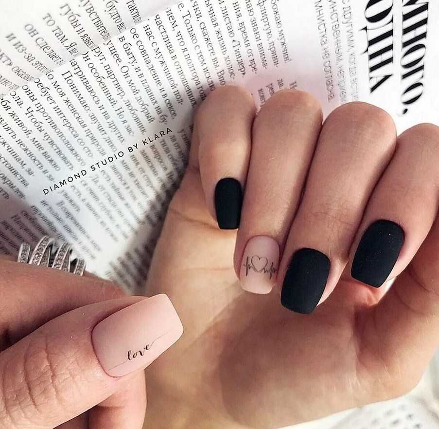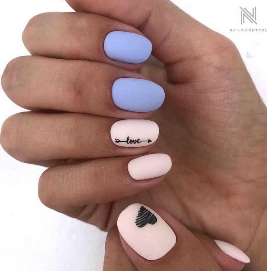 Трендом сезона будет матовый маникюр с надписями. Любые слова, буквы, фразы, цифры на матовом покрытии смотрятся невероятно стильно и модно. Если глянец часто бликует, то бархатистая поверхность не имеет такого эффекта, и рисунок получается максимально чётким.
