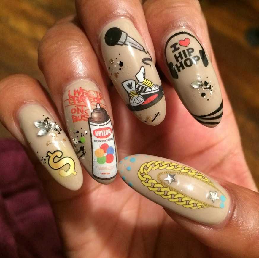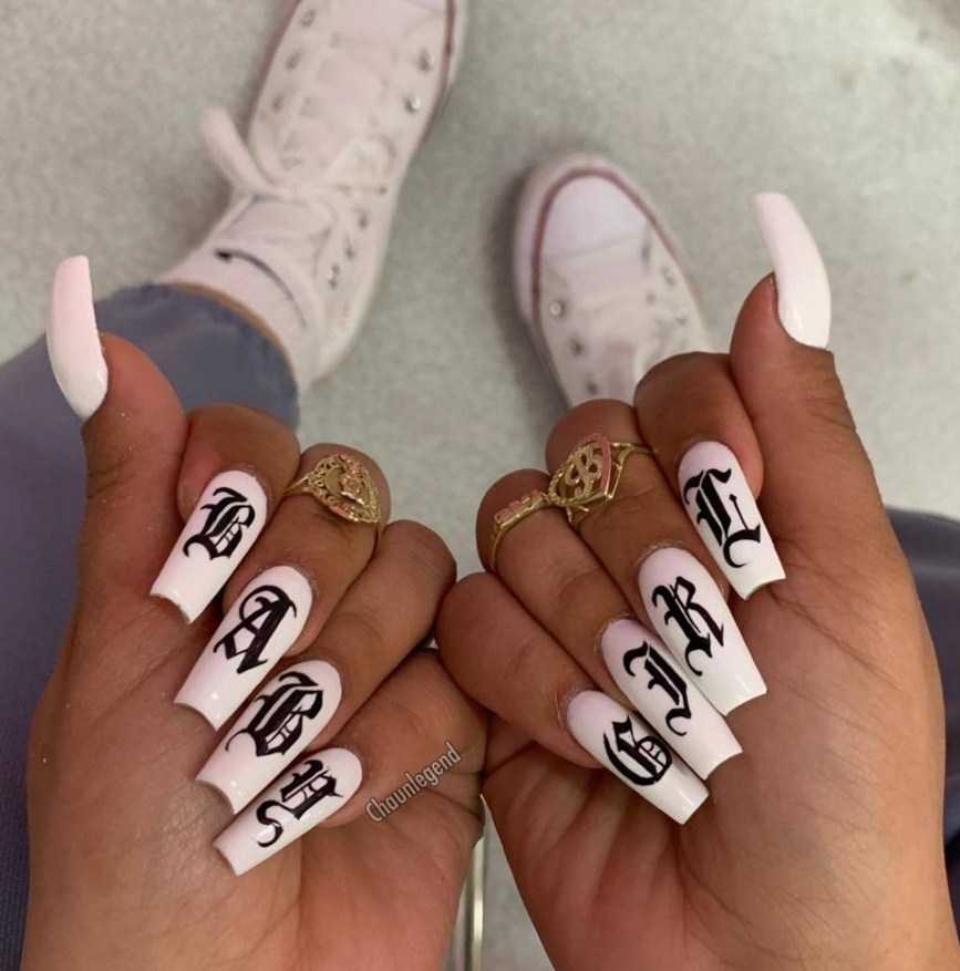 Мода на дизайн ногтей с буквами началась с логомании – ношения вещей с надписями, которые принадлежали к категории люксовых. Изначально на ноготки начали наносить наименования модных брендов, а потом уже стали черпать идеи из окружающего мира, повседневной жизни, фильмов и мультиков, книг, журналов, фото.