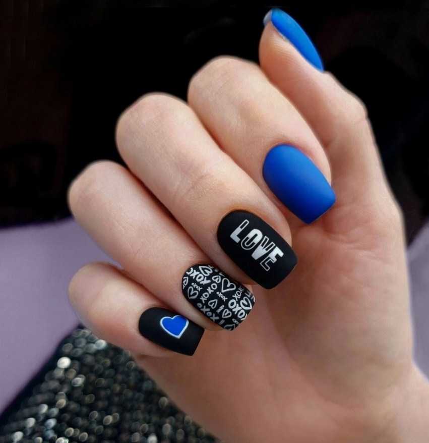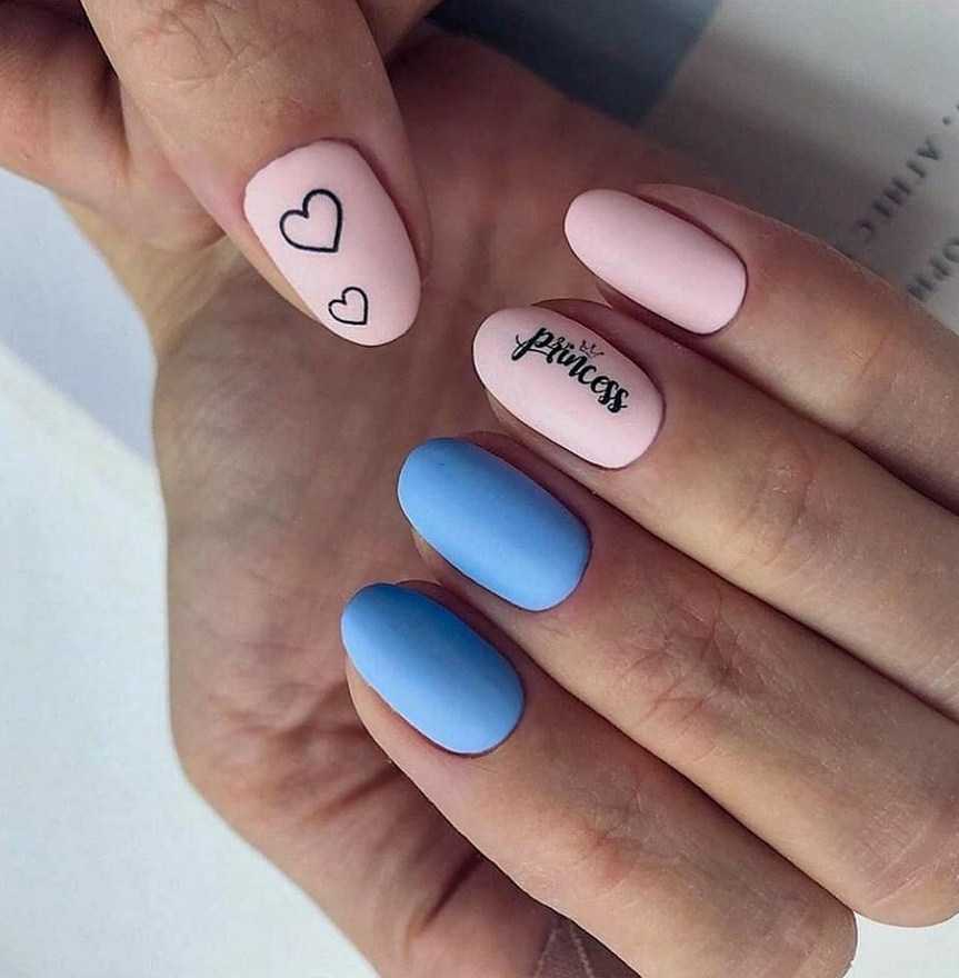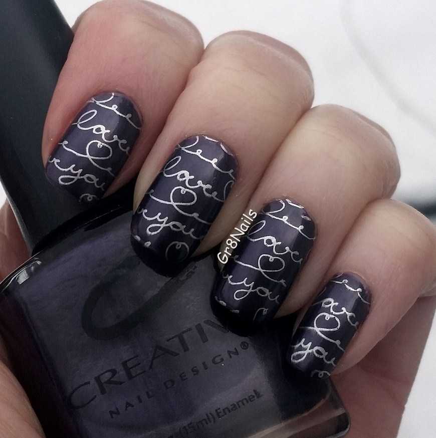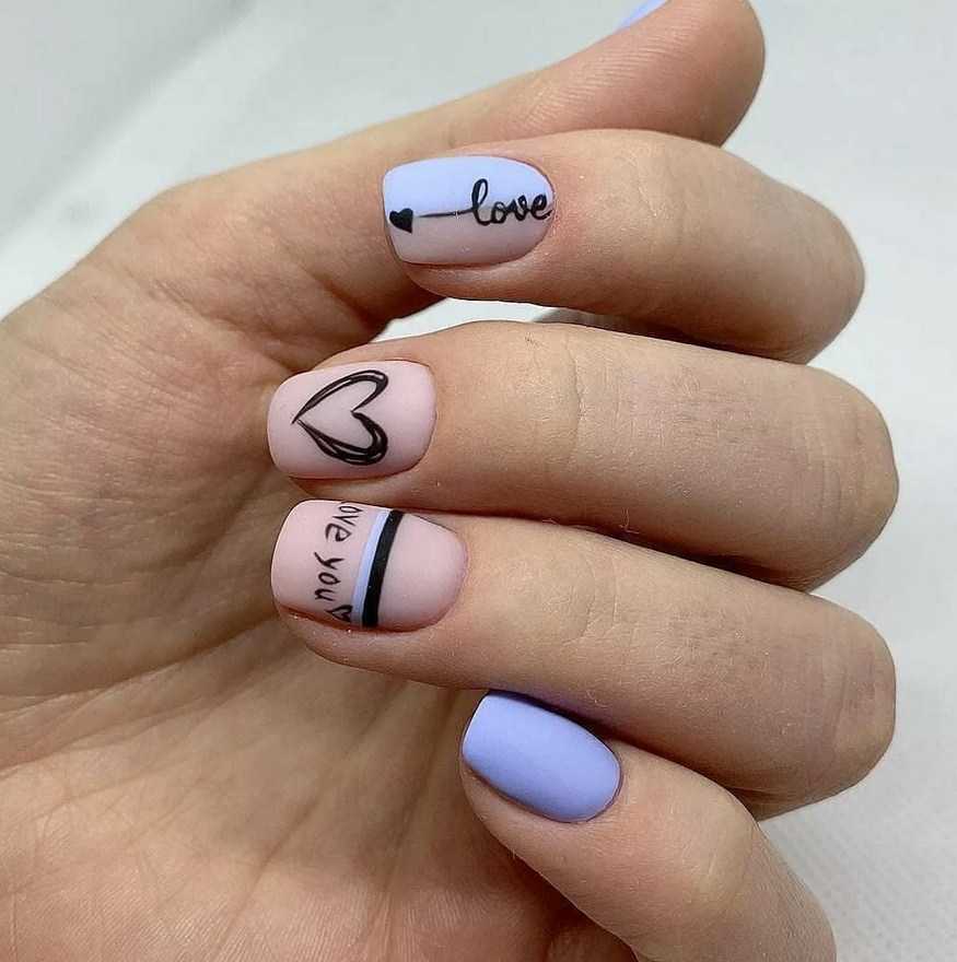 Этот маникюр преобладает множеством преимуществ. И цветовую гамму оттенков, и надписи вы выбираете сами, ориентируясь на свою фантазию и полет мыслей. Дизайнером его являетесь вы сами. Вы можете использовать классическую надпись love, либо имя своего любимого.