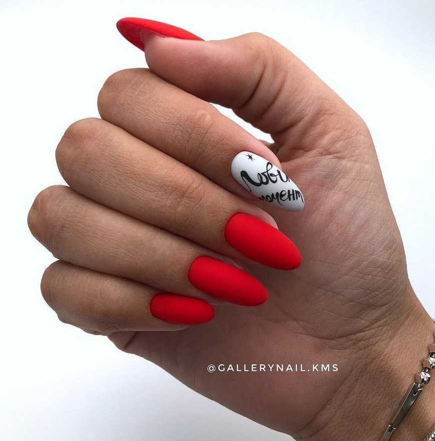 Маникюр, который подходит на 14 февраля 2022 года, красный и с надписью love